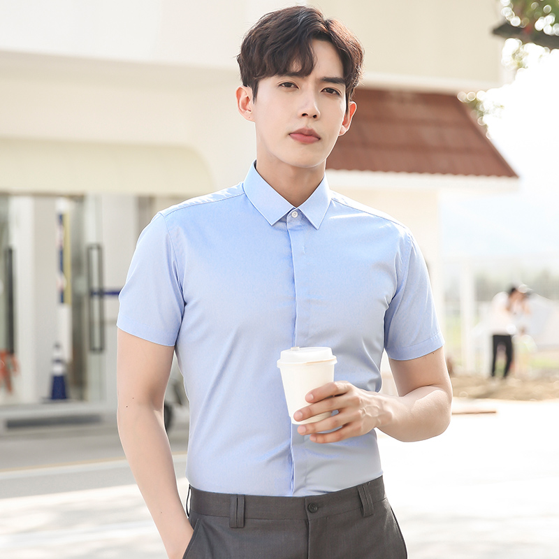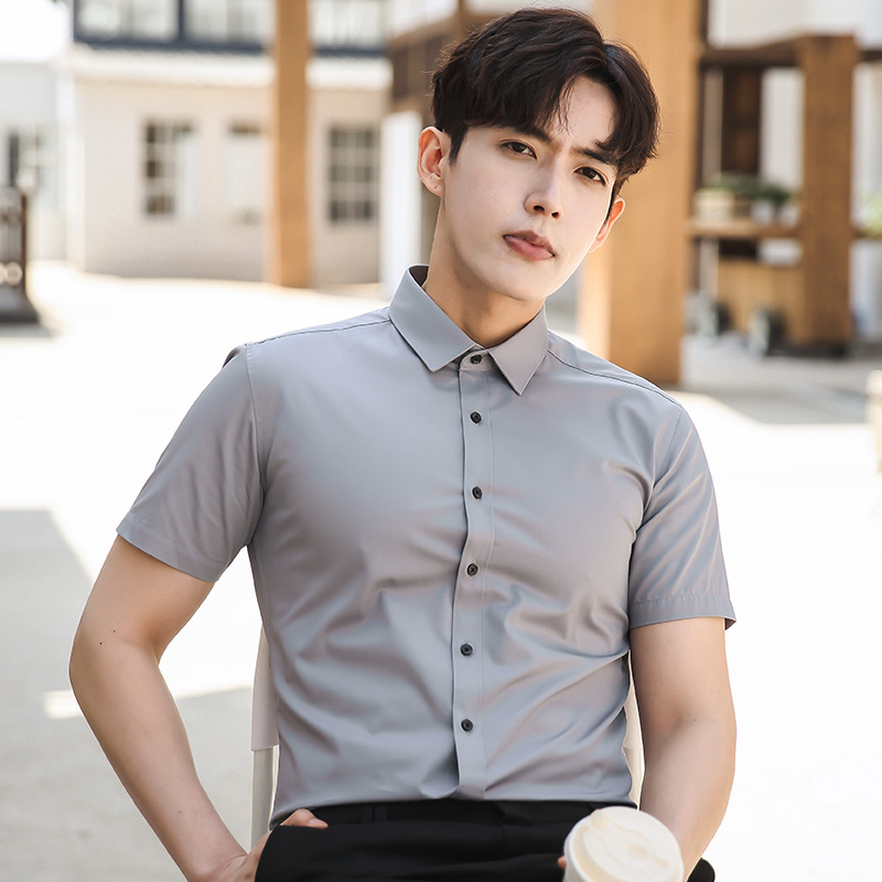 职业衬衫男短袖2021夏季薄款灰色工作服商务修身青年西装正装衬衣