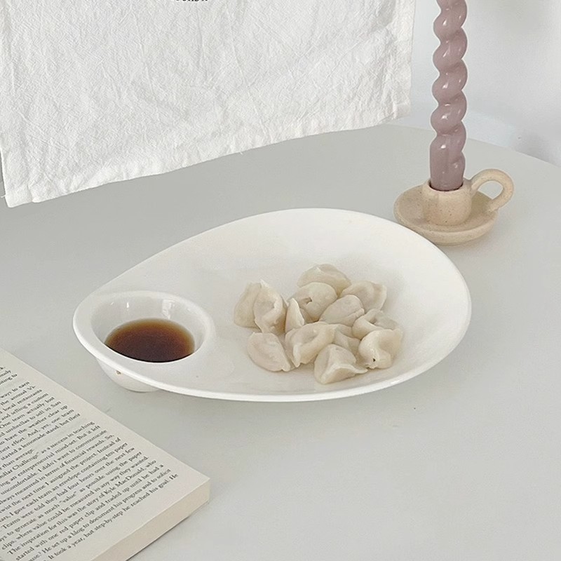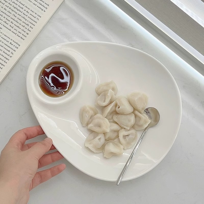 饺子盘子带醋碟碗高档酒店意境菜创意餐具家用2024新款吃虾凉菜盘