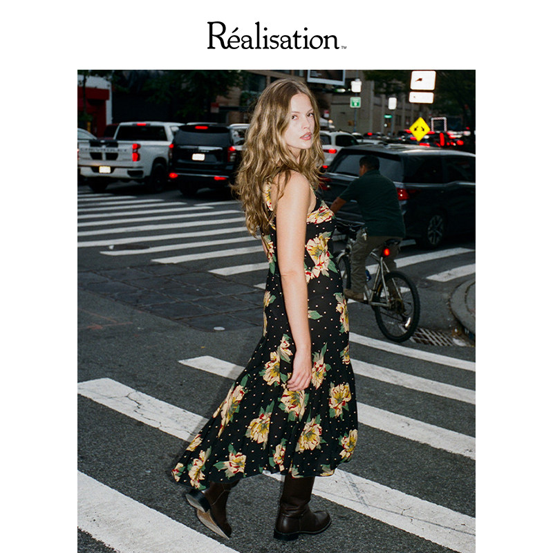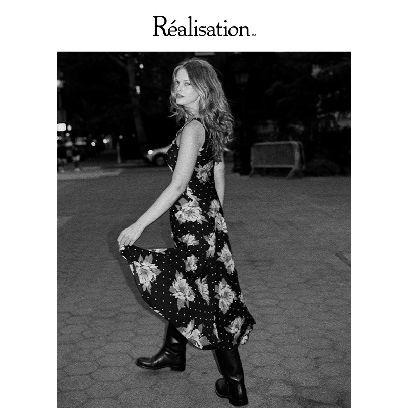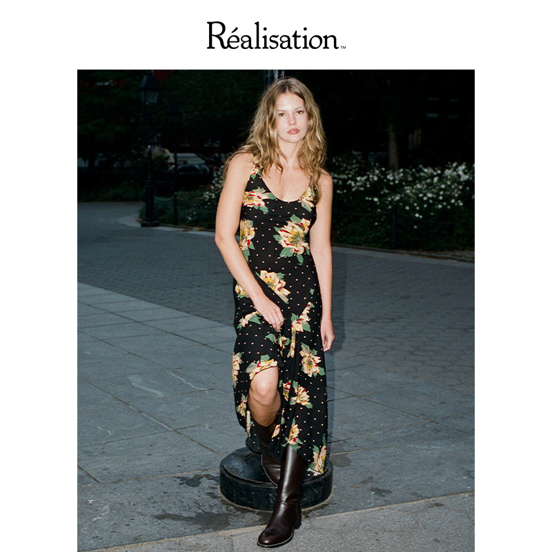RealisationPar 连衣裙法式圆领斜裁吊带真丝长裙The Ellery