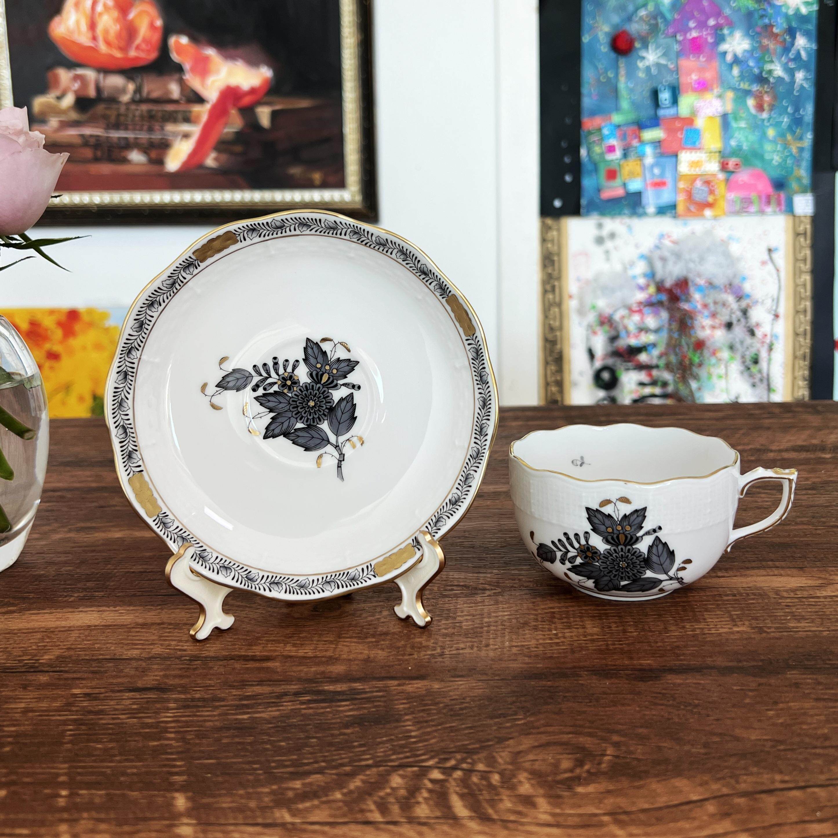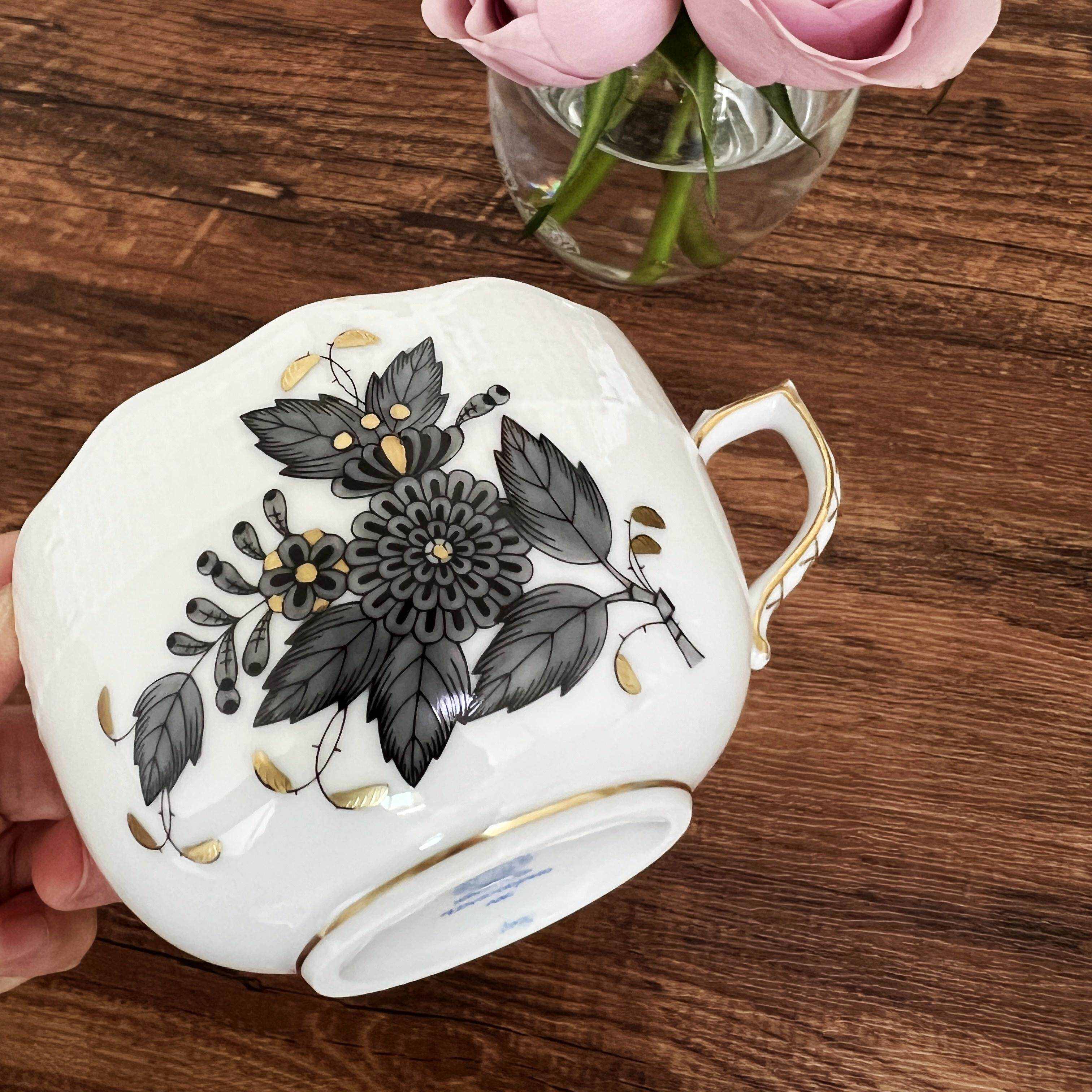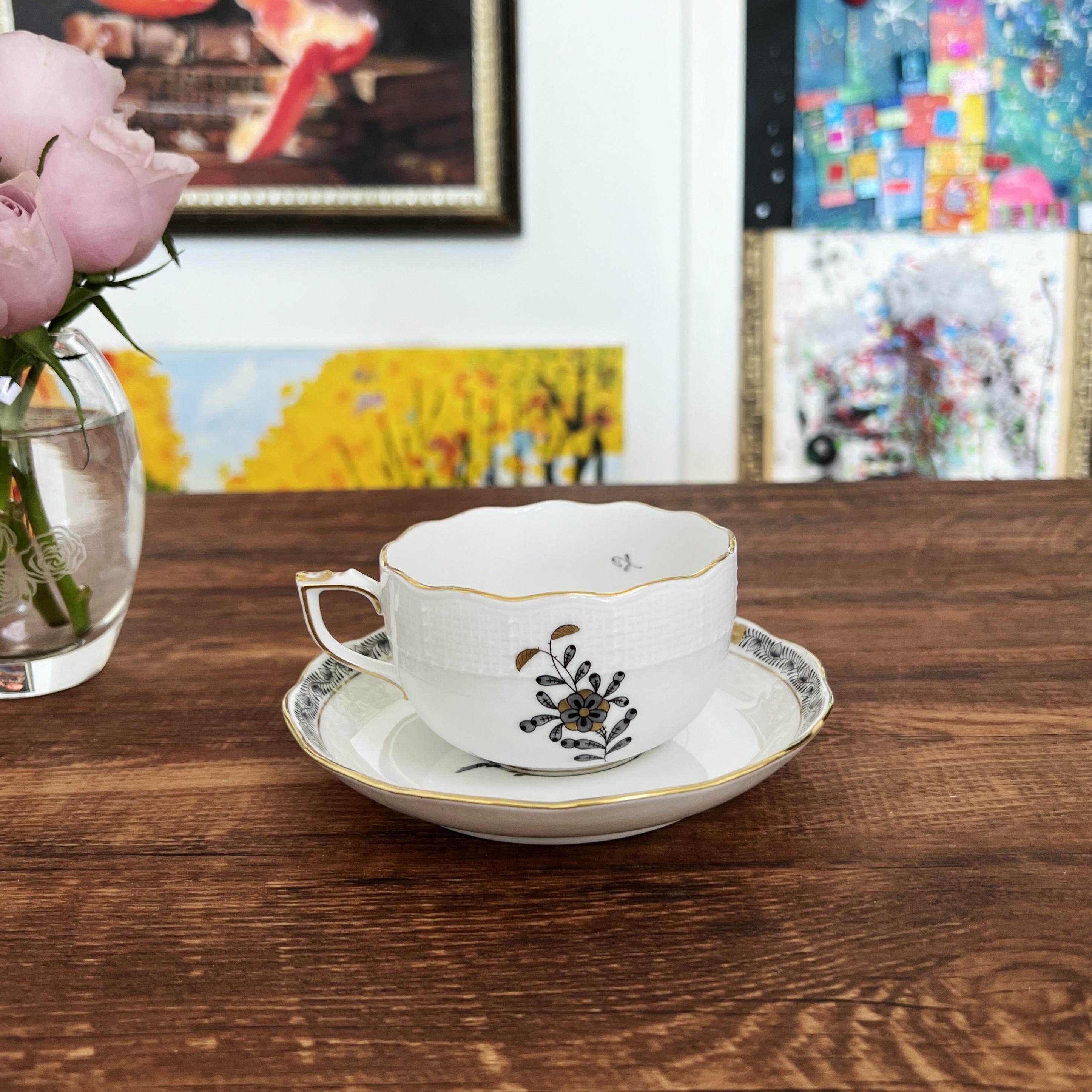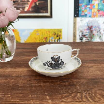 匈牙利进口 手绘 Herend 赫伦黑色阿波尼下午茶红茶杯碟咖啡壶ANG