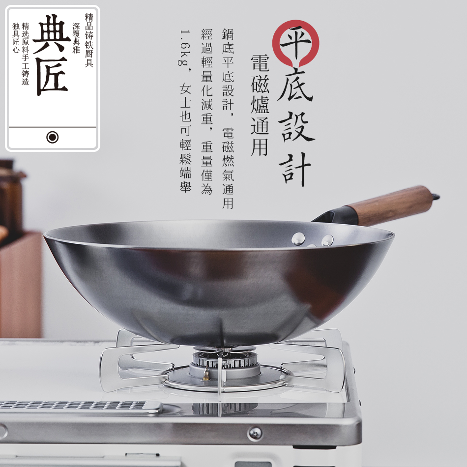 典匠铸铁炒锅铁锅家用炒菜锅无涂层不粘锅生铁平底燃气电磁炉32cm