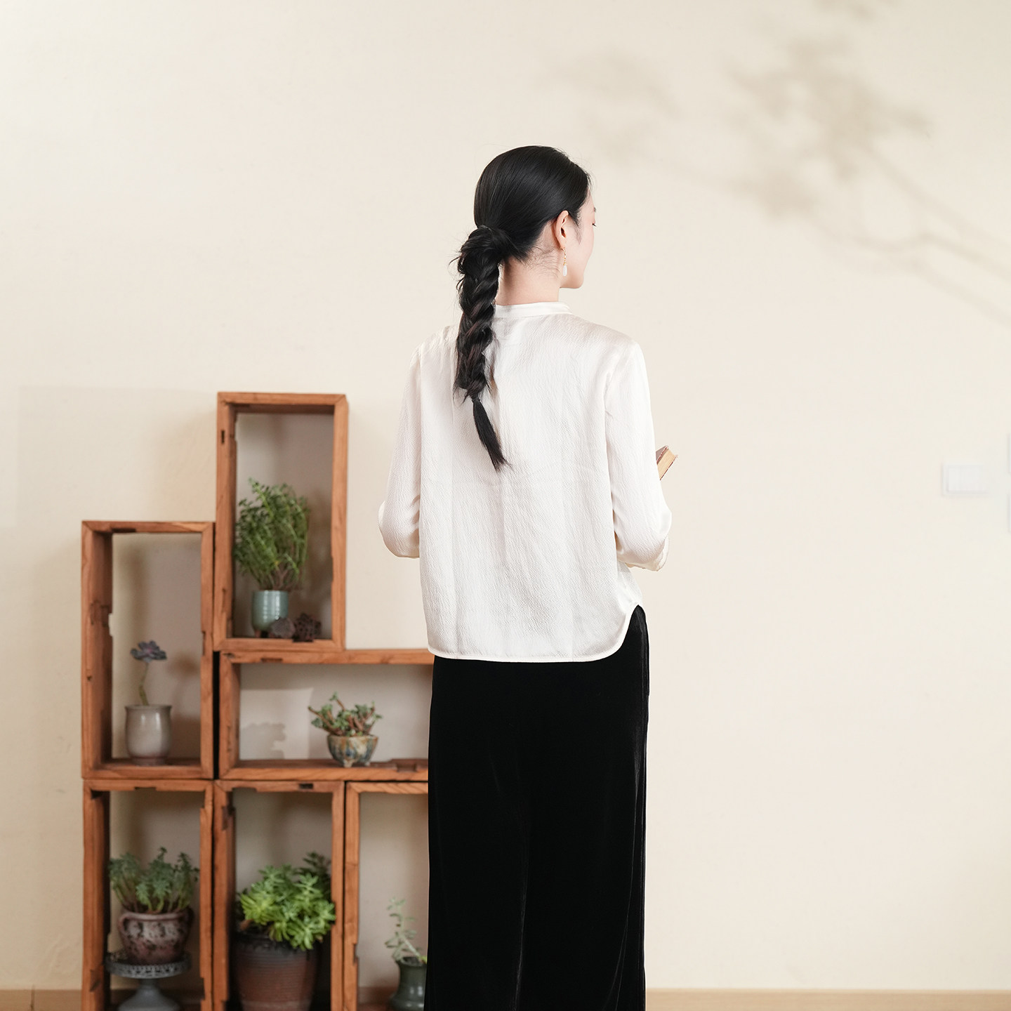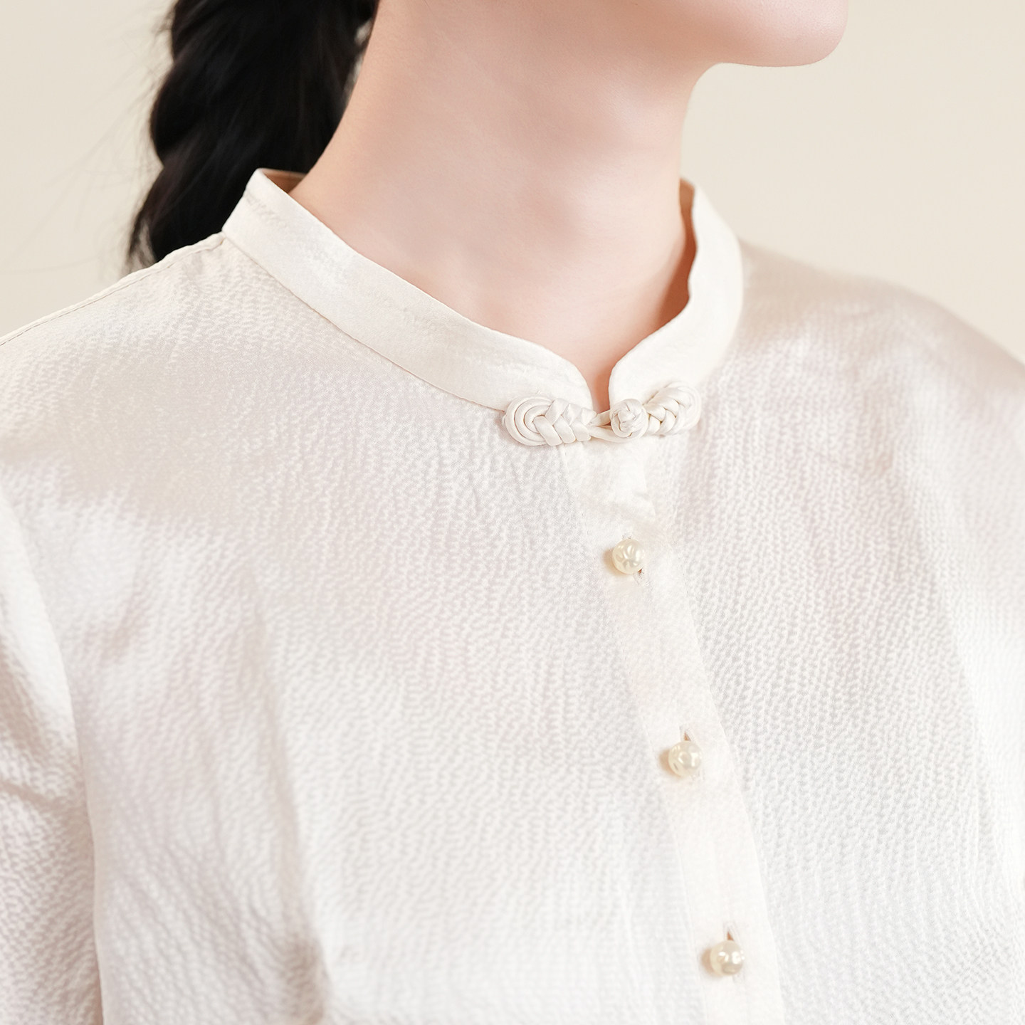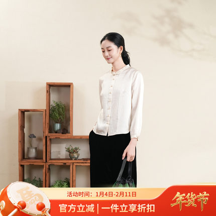 布符新中式真丝珍珠缎领衬衫