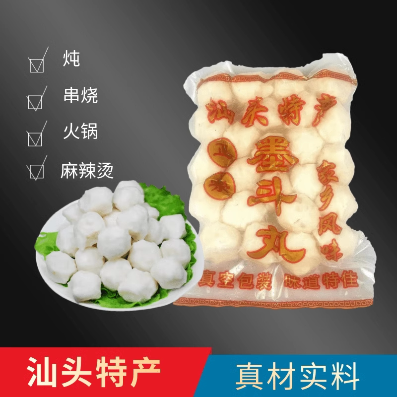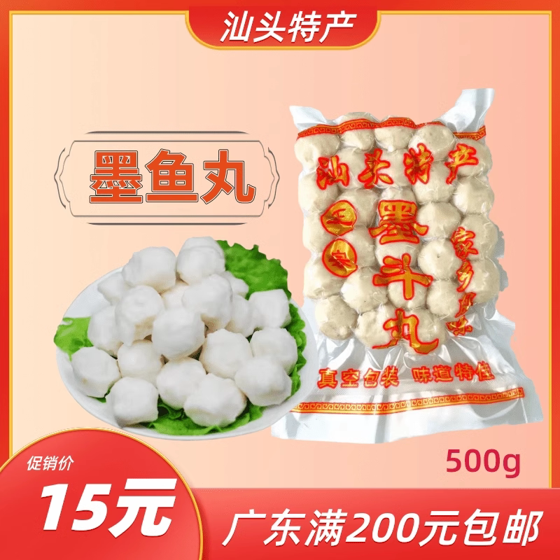 汕头特产500g潮汕风味墨鱼丸手打