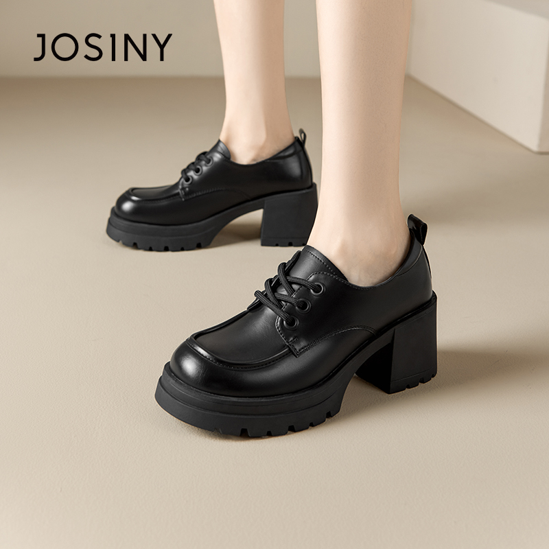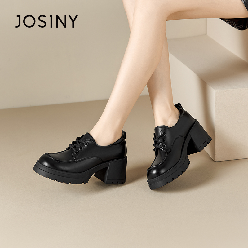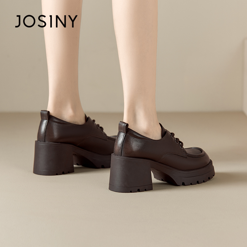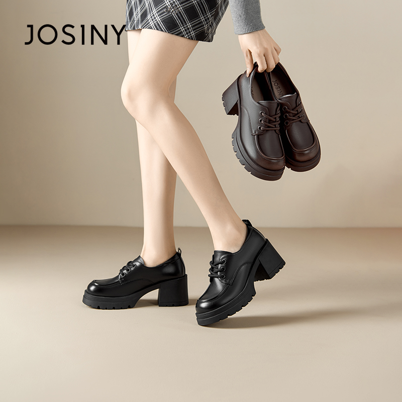 卓诗尼女鞋撤柜正品复古学院风系带乐福鞋圆头粗跟厚底舒适百搭潮
