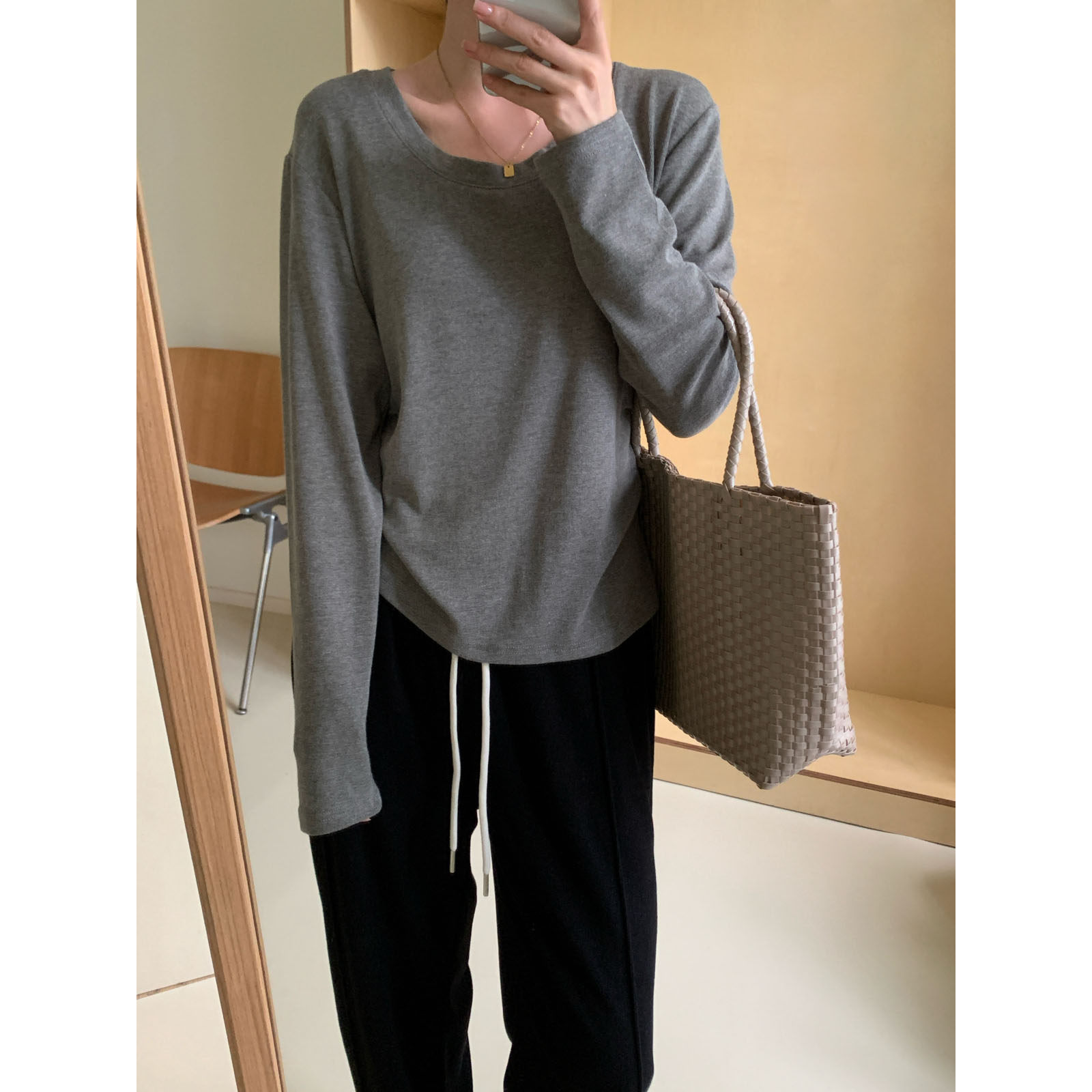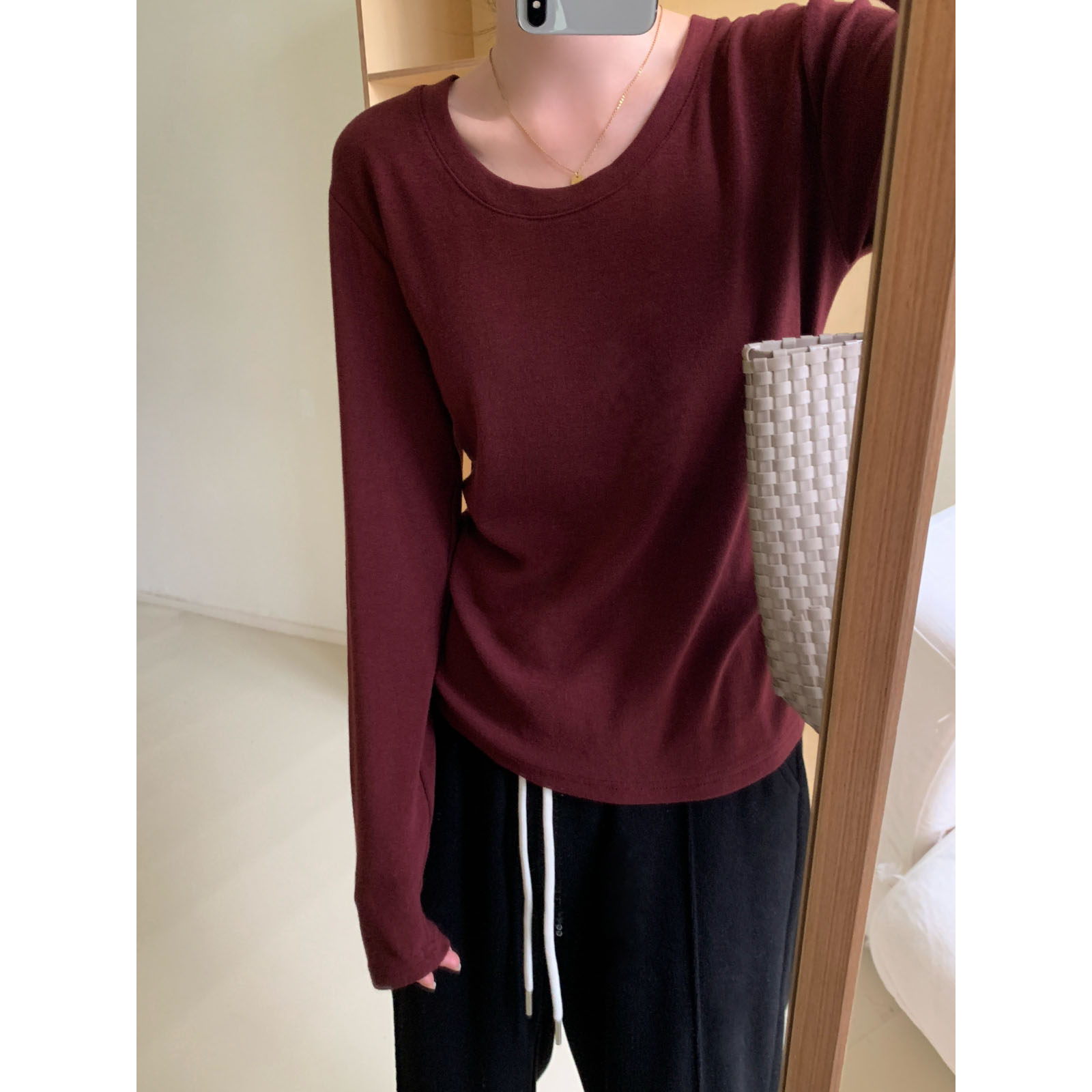 2024秋冬内搭b入圆领t恤打底衫 软糯亲肤弹力百搭纯色内搭长袖t恤
