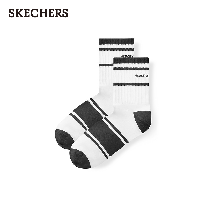 斯凯奇男款时尚简约2双装中筒运动袜时尚百搭休闲袜舒适耐磨袜子