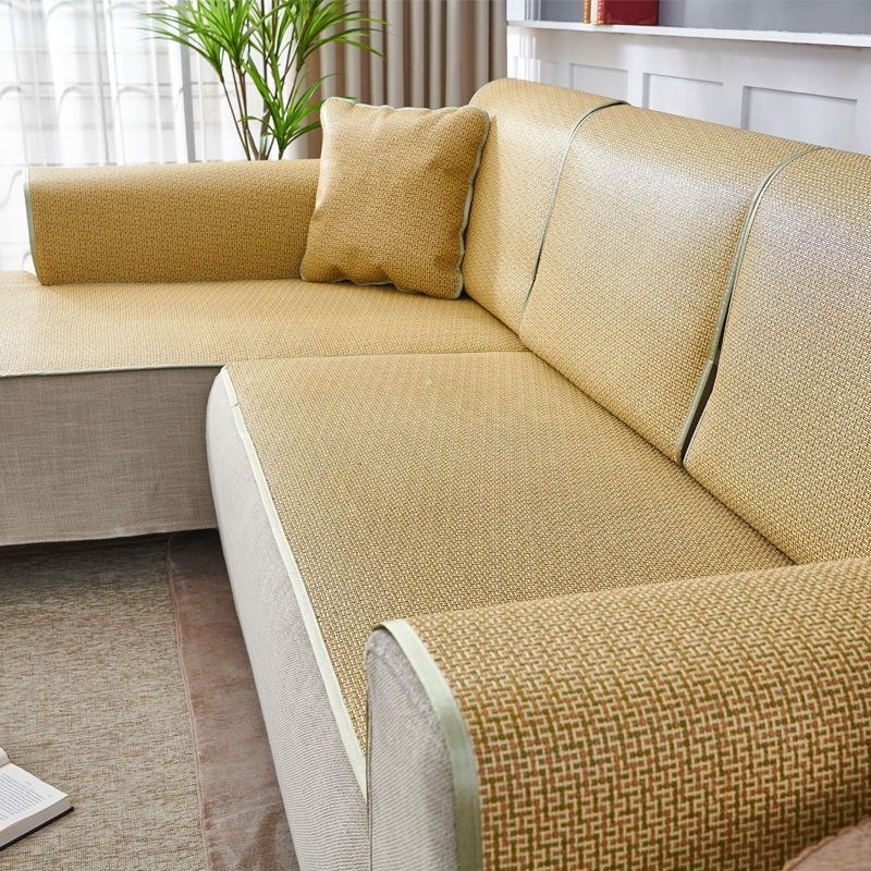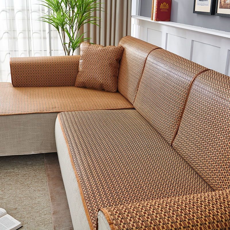 夏季沙发凉席坐垫夏天通用型防滑藤席冰丝皮沙发垫客厅组合套罩