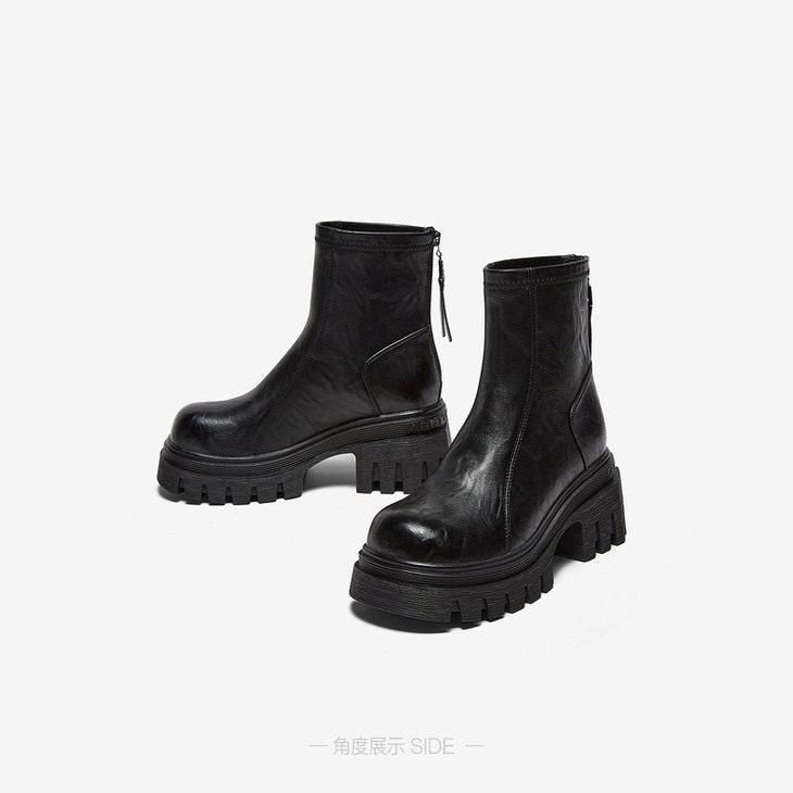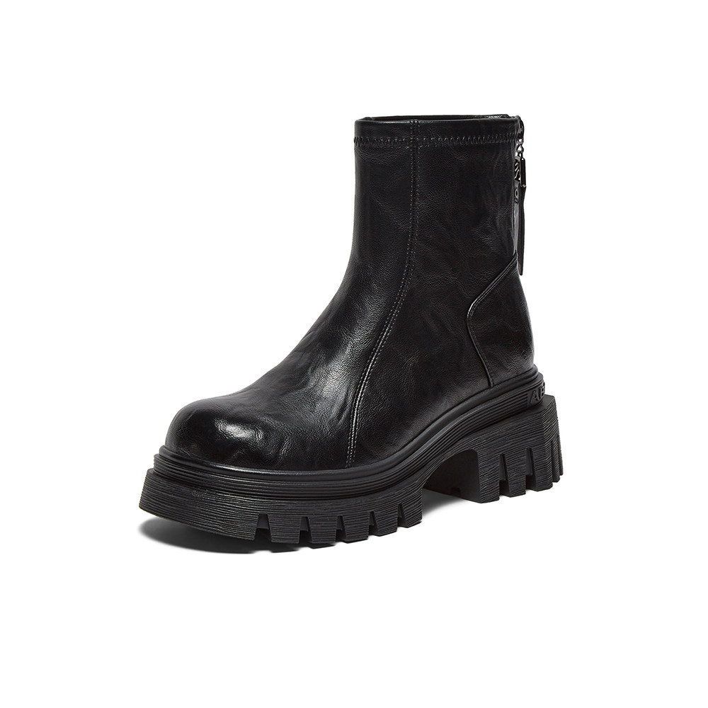 专柜正品百思图2025冬款女靴高跟粗跟短靴厚底增高马丁靴F6012DD5