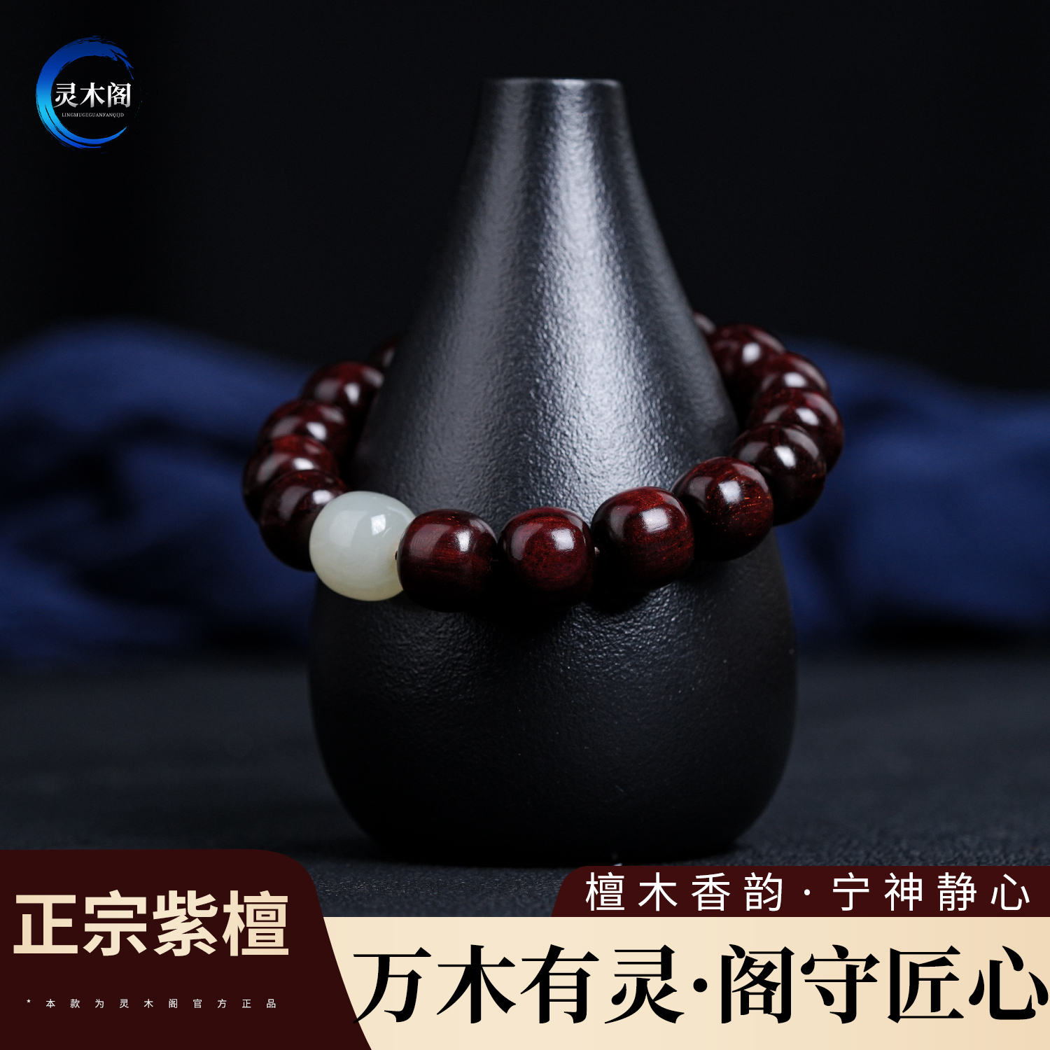 真品印度小叶紫檀手串男士天然檀香木质手链女款佛珠文玩老型桶珠