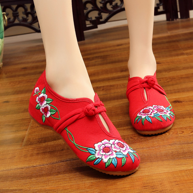 广场舞布鞋女绣花北京布鞋加厚软底舞蹈鞋老民族风古典红色跳舞鞋