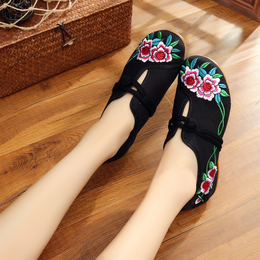牛筋软底民族风绣花广场舞蹈布鞋