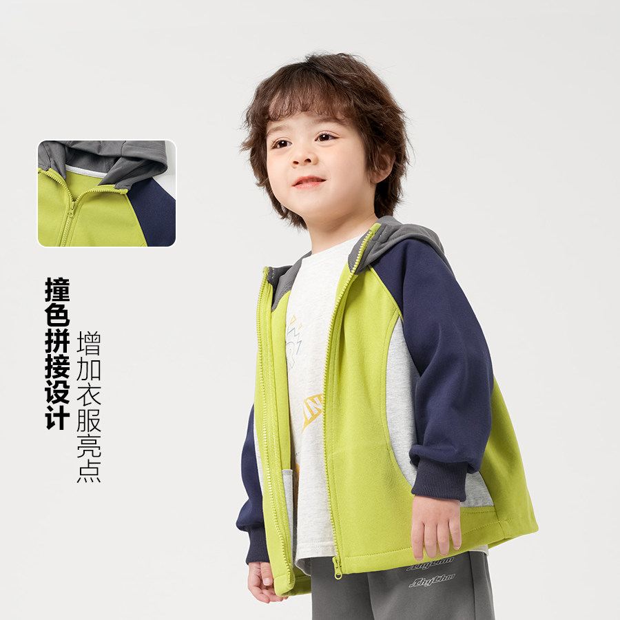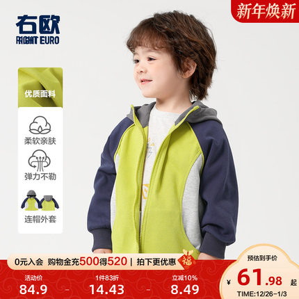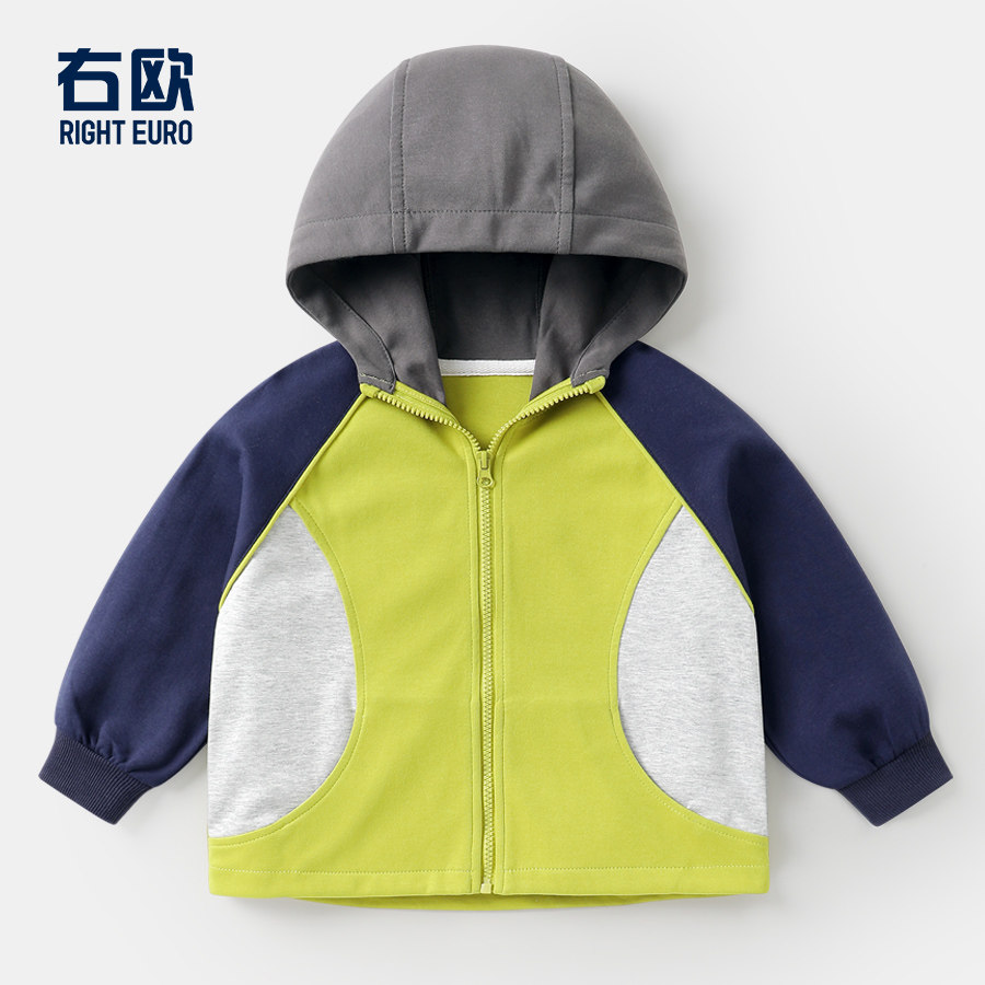 右欧男童连帽外套女童运动服拼色休闲春秋季新款童装儿童春装卫衣