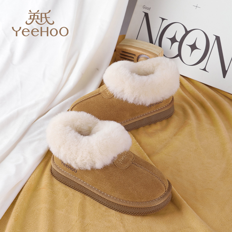 英氏儿童雪地靴冬季加绒棉鞋中大童英伦风休闲保暖加绒低帮马丁靴
