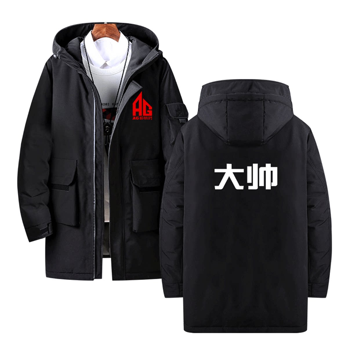 AG超玩会战队服梦泪一诺王者Kpl同款比赛男定制中长款休闲羽绒服