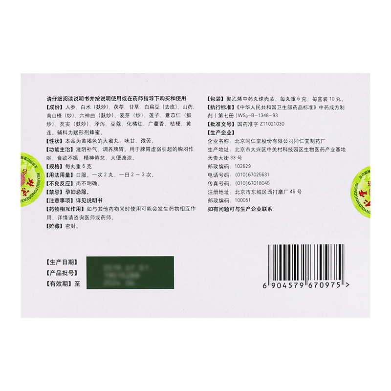 北京同仁堂 补益资生丸10丸 补气 脾胃虚弱 补溢补溢滋生丸