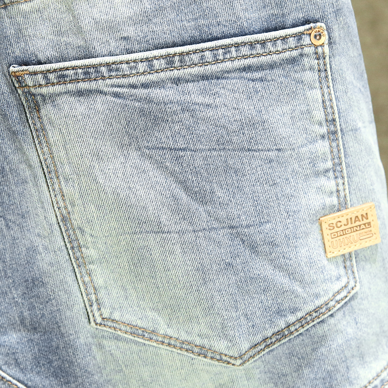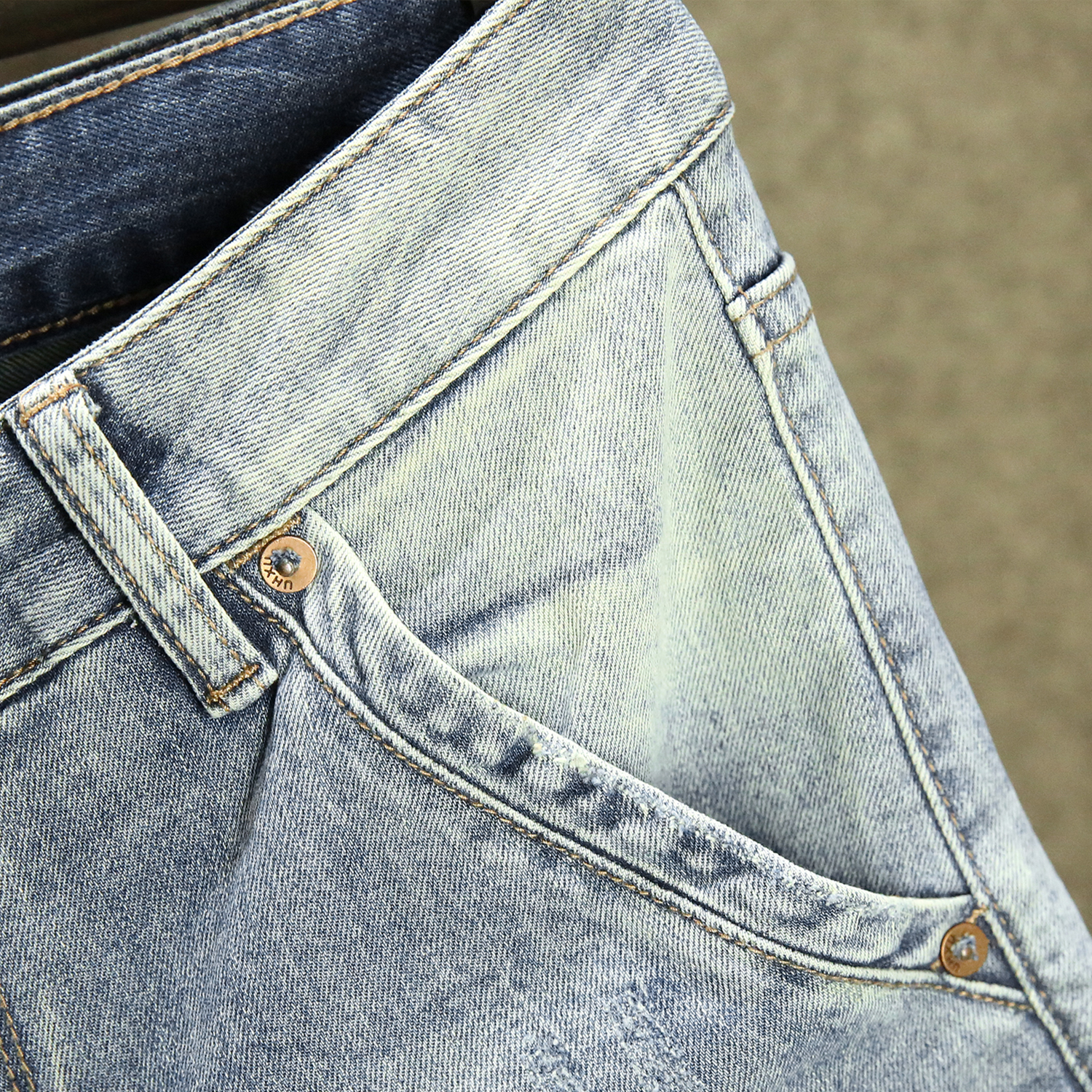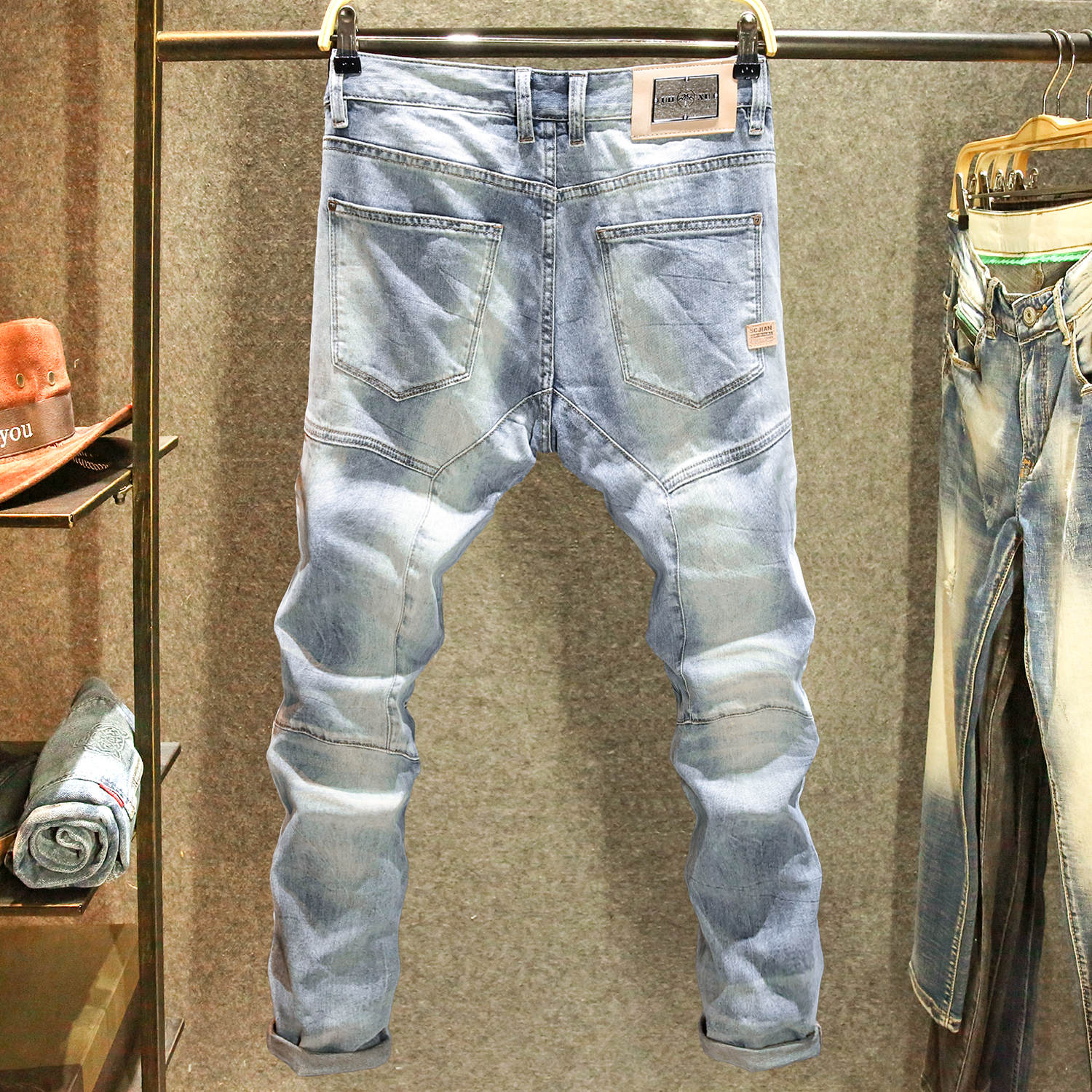 潮牌机车浅蓝色牛仔裤男时尚休闲拼接百搭长裤高端个性修身小脚裤
