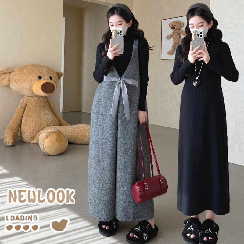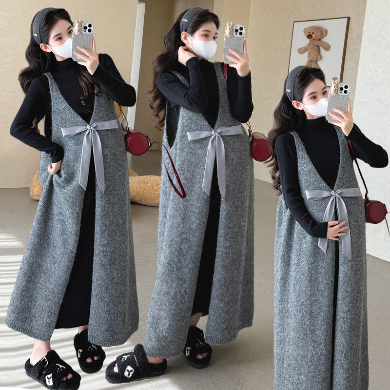 孕妇秋装连衣裙2025新款秋冬款套装时尚款洋气宽松针织马甲两件套