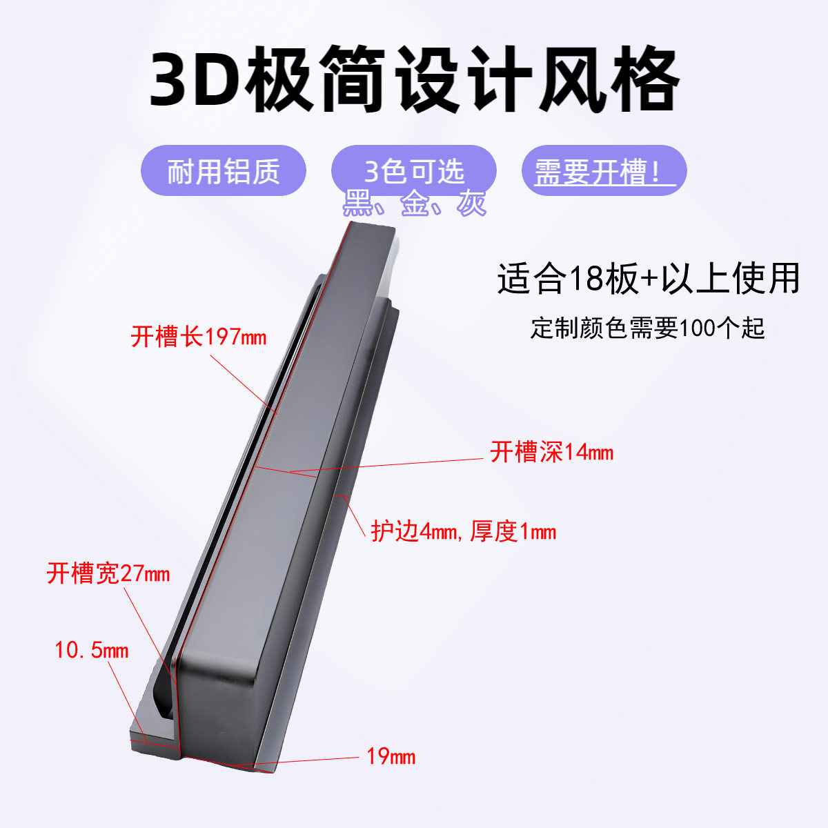 黑色灰色金色立体嵌入式抽屉衣柜门橱柜拉手隐形暗装隐藏暗装把手