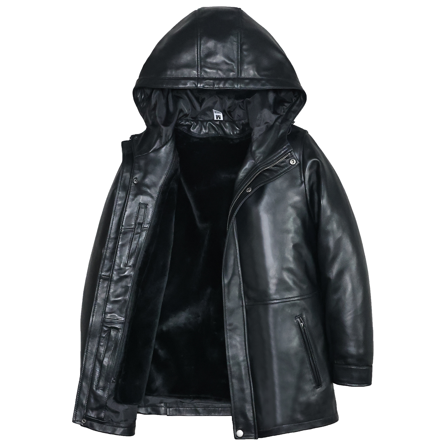 柔软头层绵羊真皮皮衣男修身连帽脱卸毛绒内胆派克服厚夹克外套凡