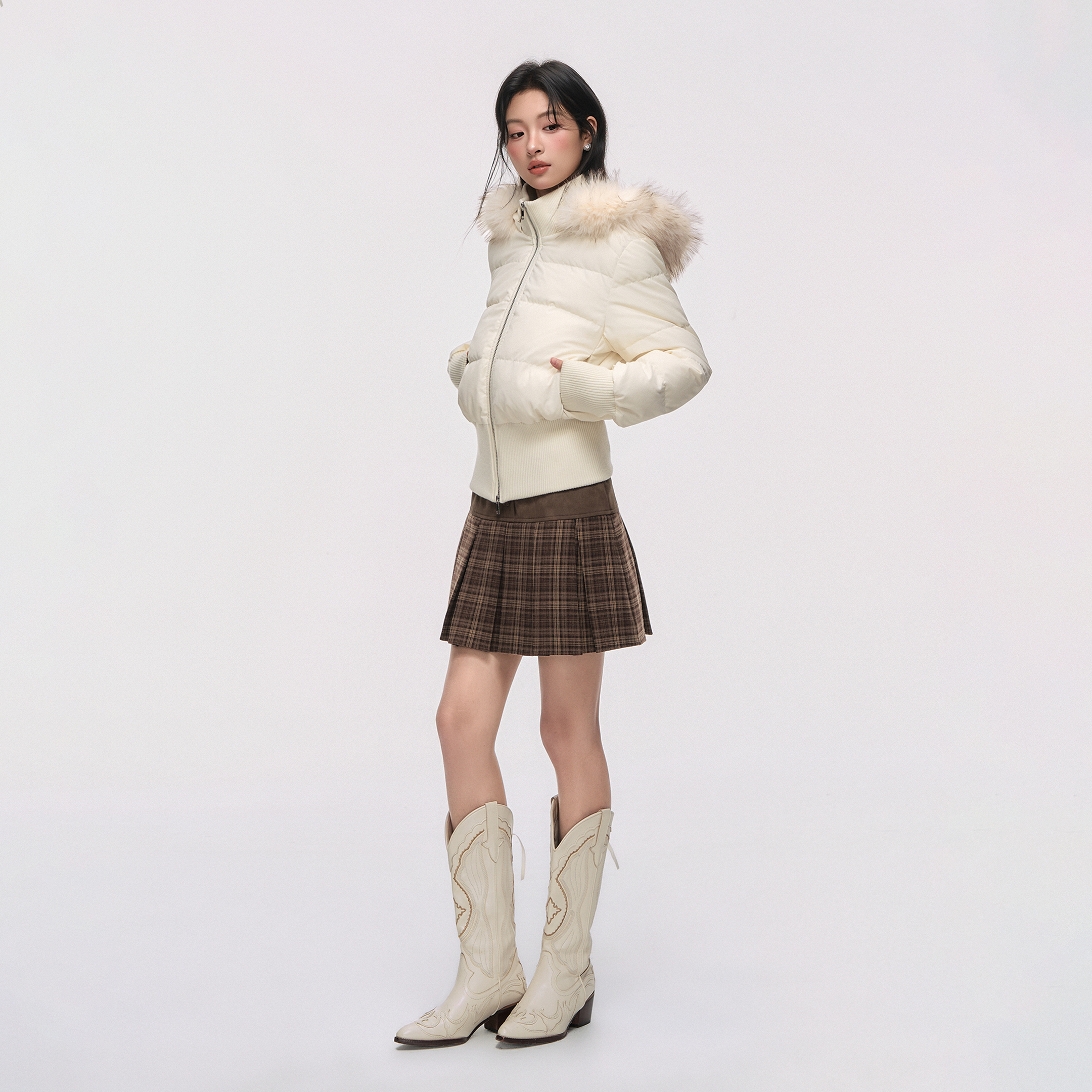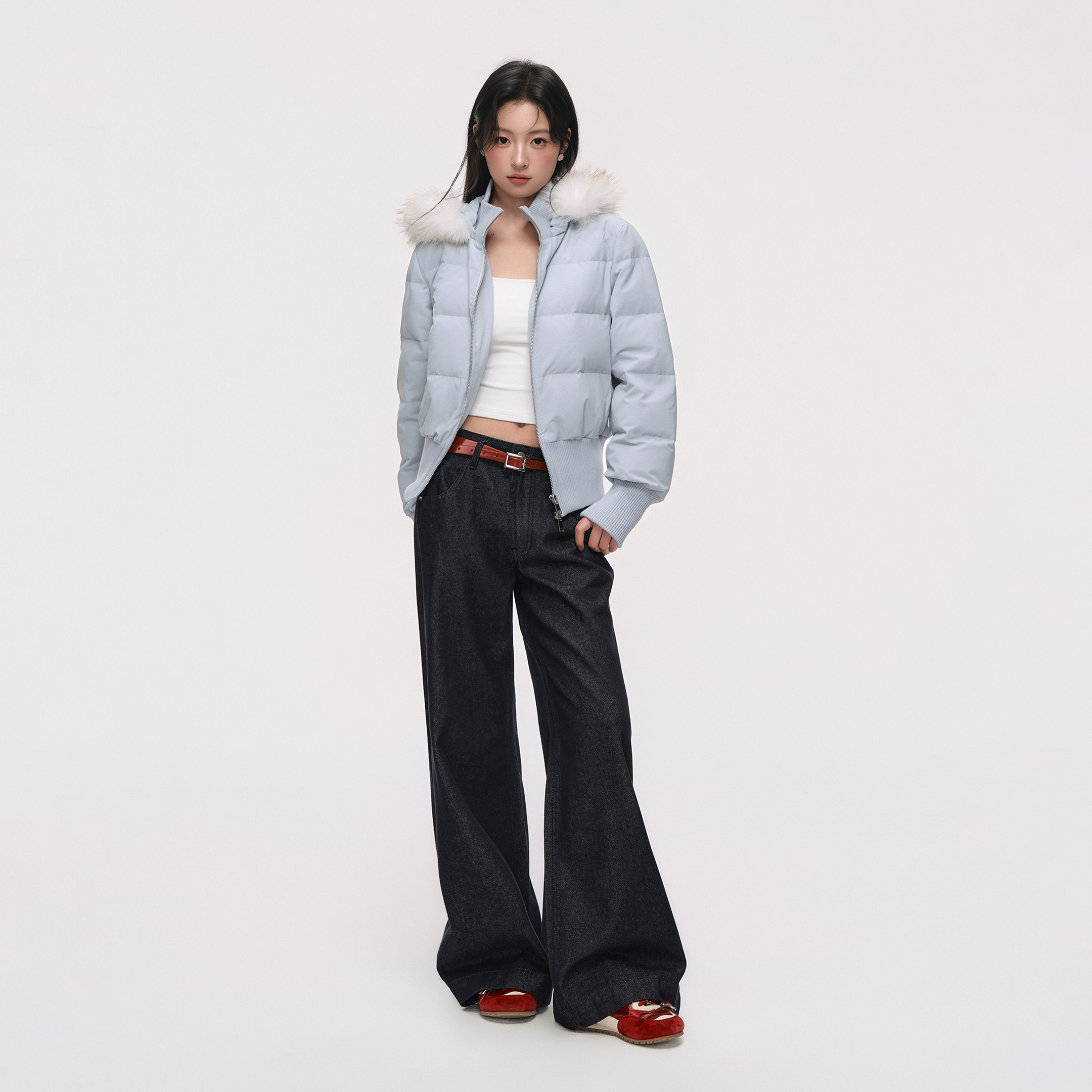NS76冬季90白鸭绒可拆卸毛领连帽收腰保暖短款防水羽绒服外套女