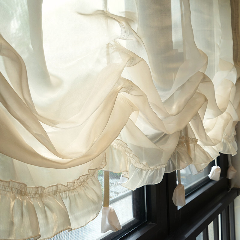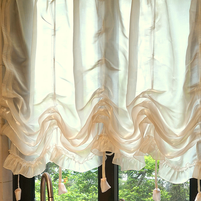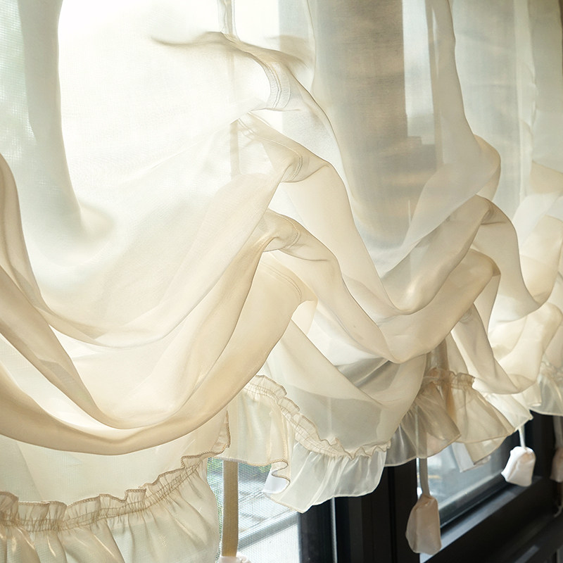 法式蕾丝窗帘香槟色鎏金纱帘美式罗马提拉帘厨房半帘穿杆唯美