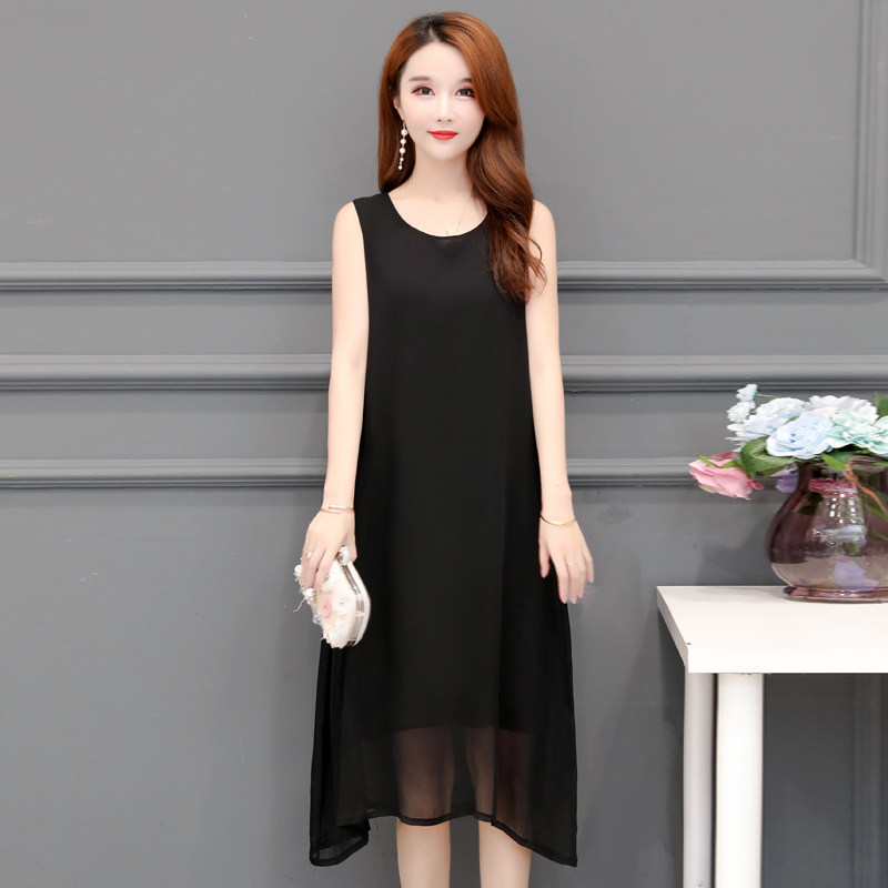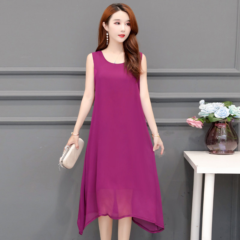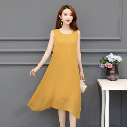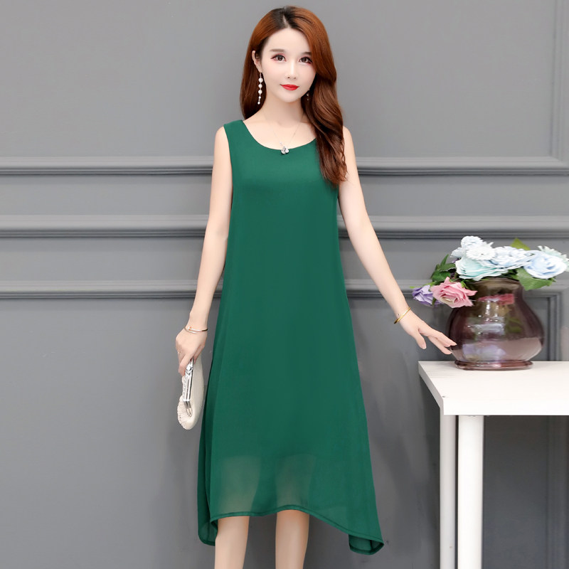新款真丝中长裙子吊带裙中年妈妈女夏无袖高档大码内搭背心连衣裙