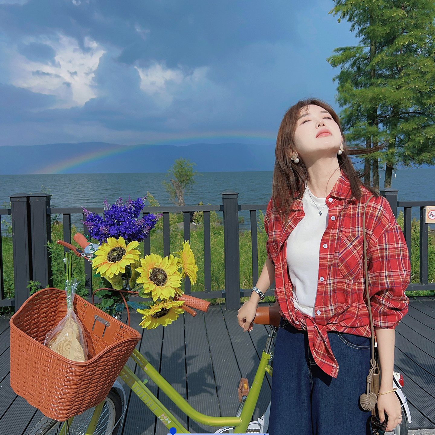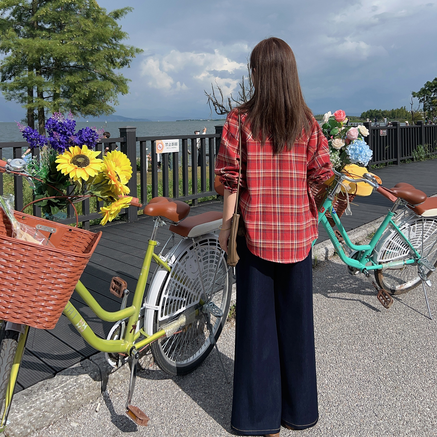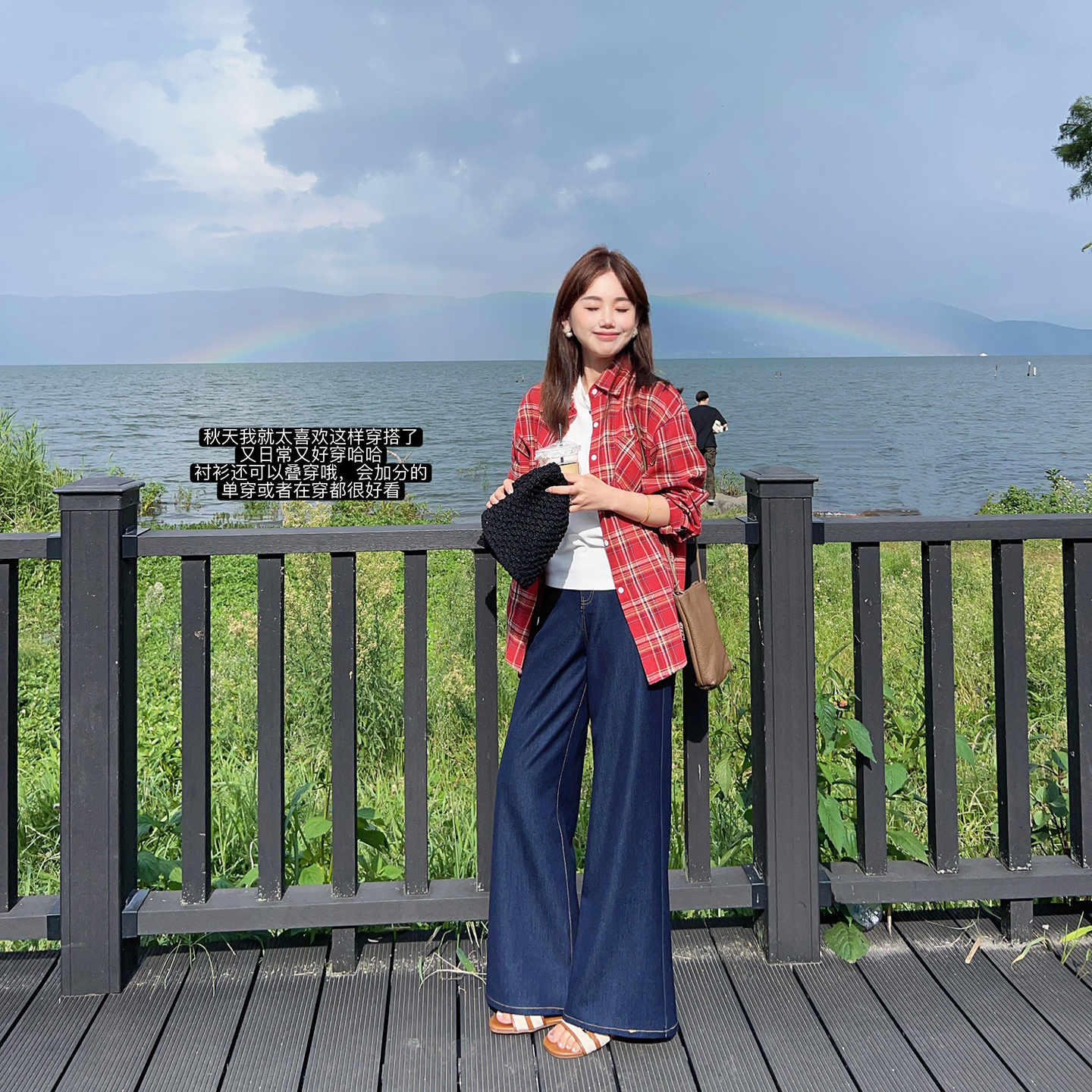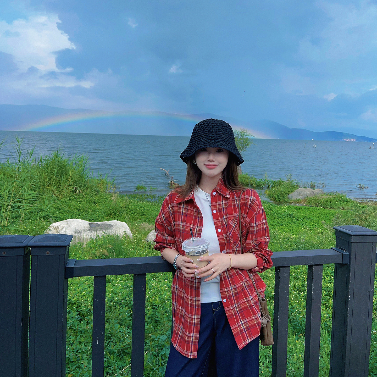 小小家小个子小码宽松红格子衬衫25秋新款长袖软糯休闲风外套上衣