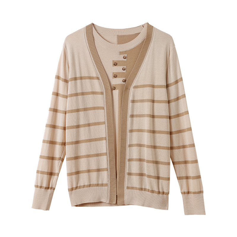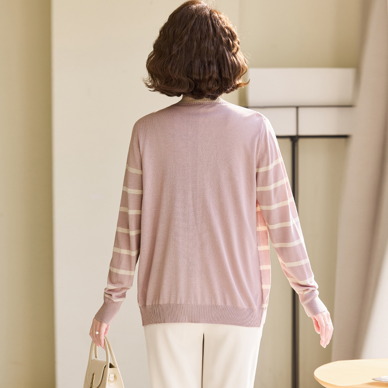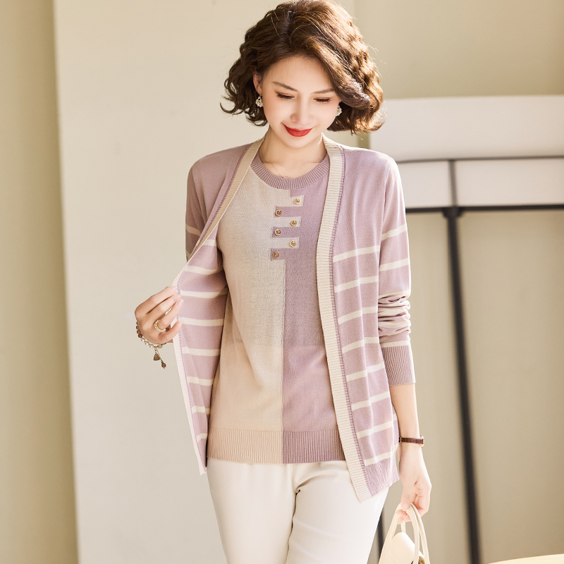 2025新款妈妈春夏装条纹外套中年女针织套装中老年春秋时尚两件套