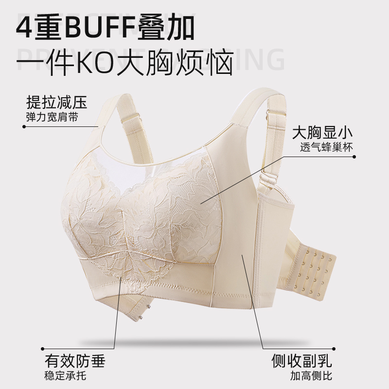 大码调整型大胸显小显瘦内衣女反重力上托防下垂侧收副乳聚拢文胸