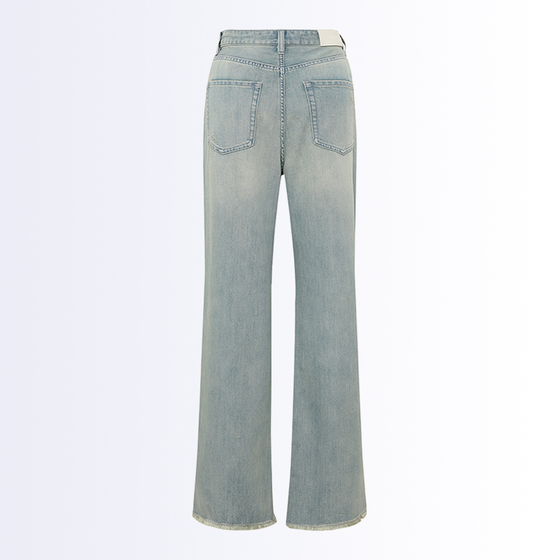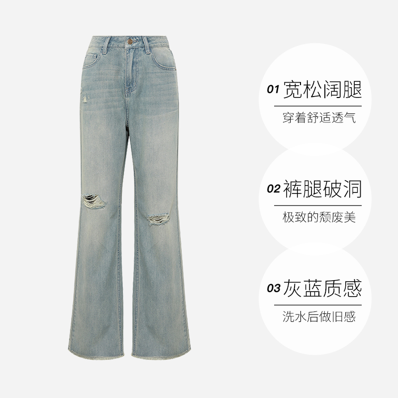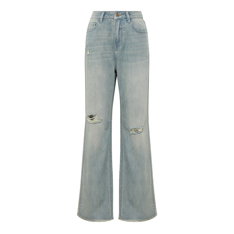 【自营】Petit Bari 破洞直筒微阔腿女士牛仔长裤 莱赛尔微弹长裤