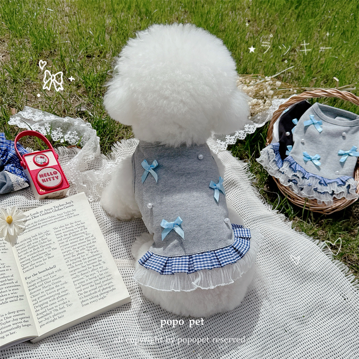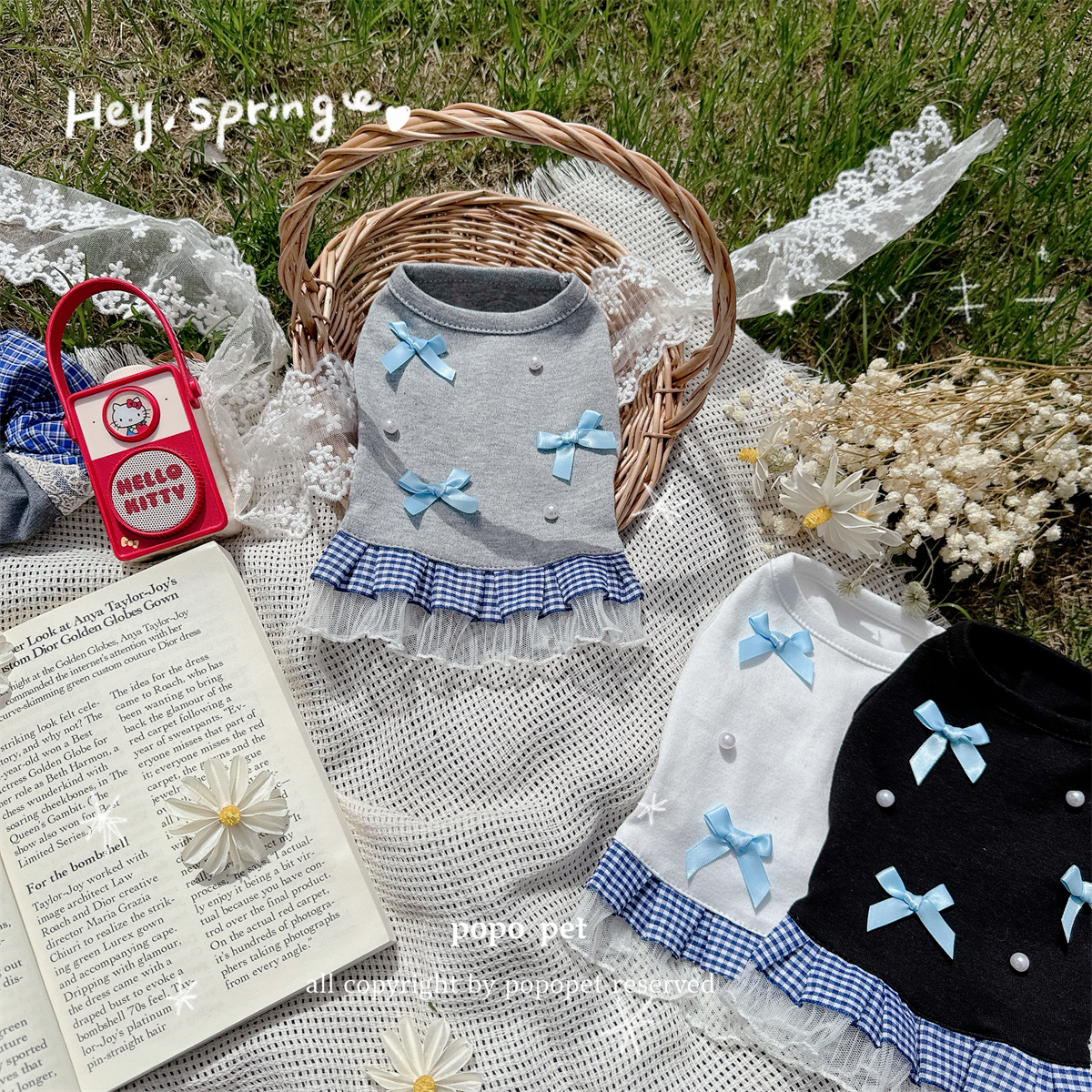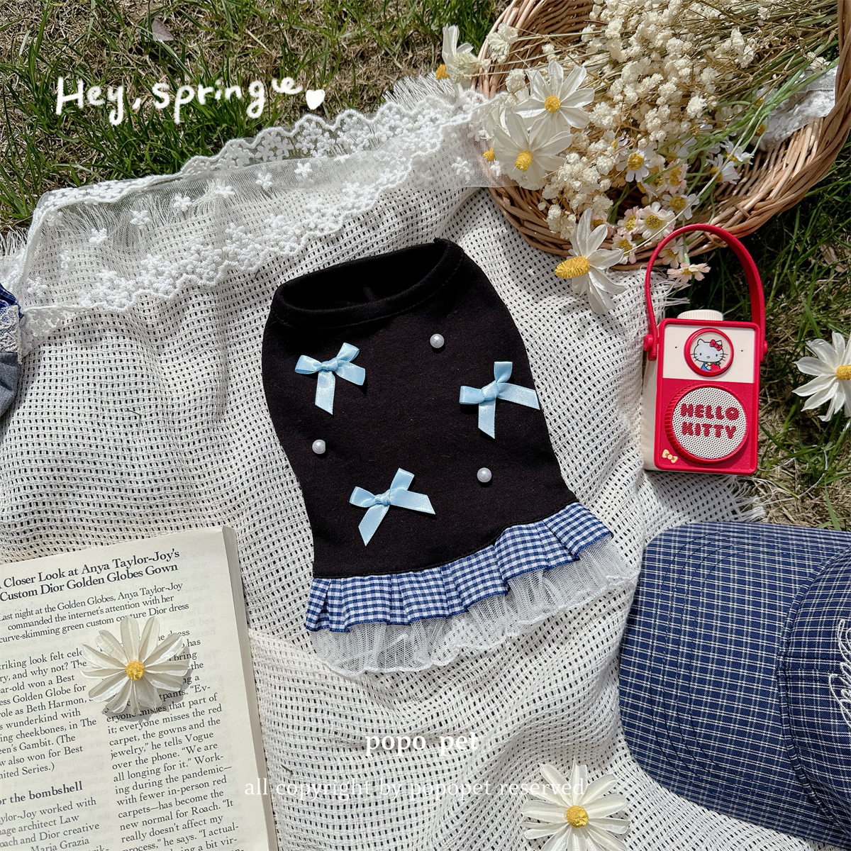 miu系拼接背心裙!格子布蕾丝 珍珠蝴蝶结 春夏宠物衣服猫咪狗狗