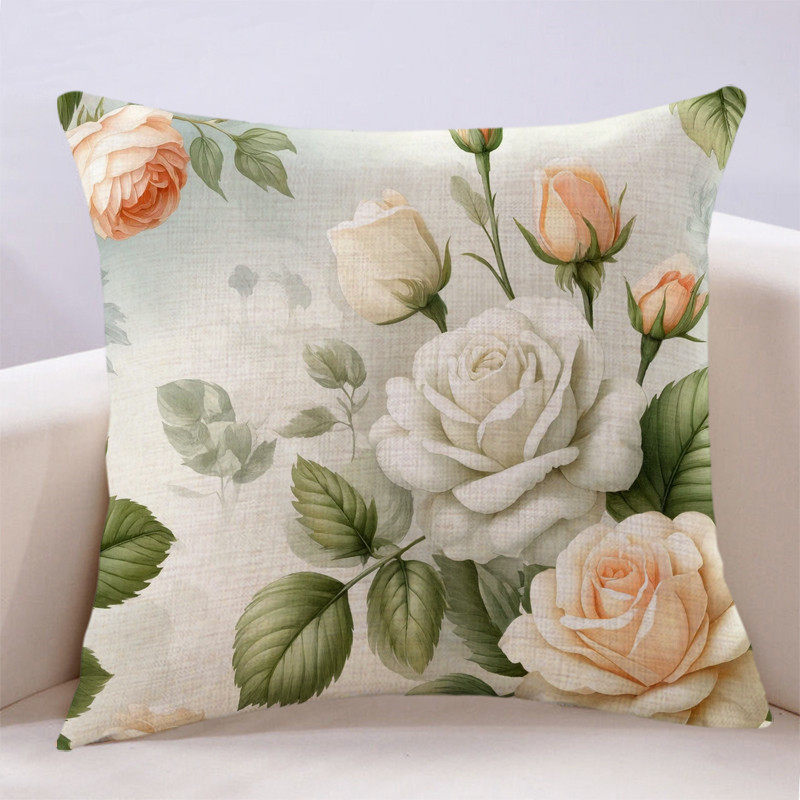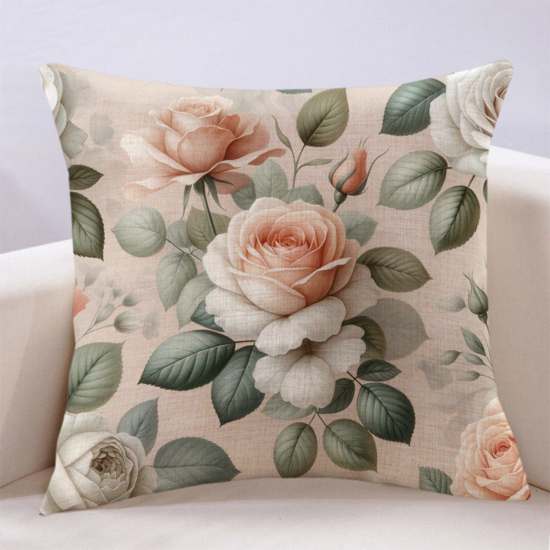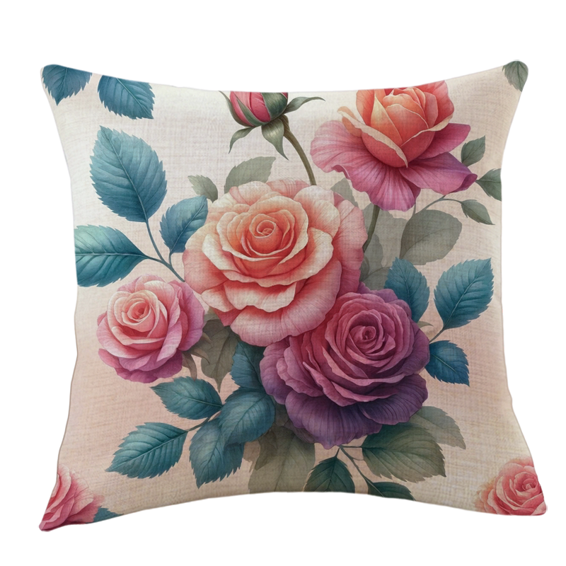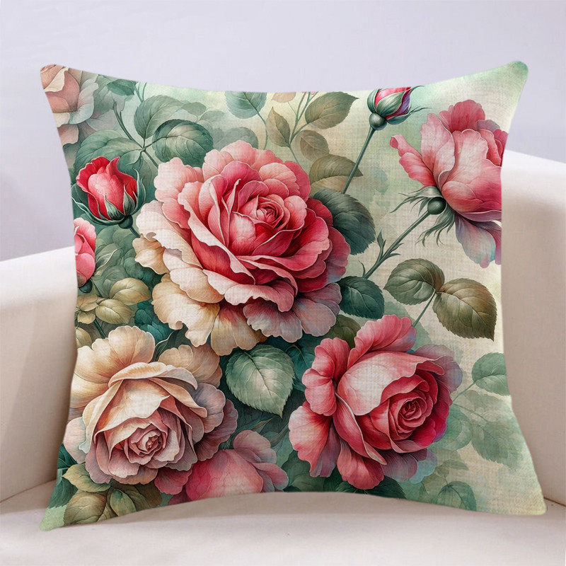 复古手绘文艺田园玫瑰抱枕飘窗沙发靠垫客厅卧室装饰靠背床上靠包
