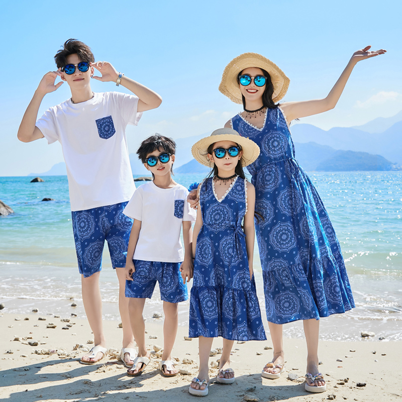 亲子装一家三口民族风海边度假沙滩裙母女装宽松大码显瘦连衣裙
