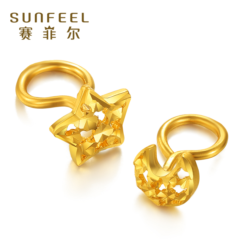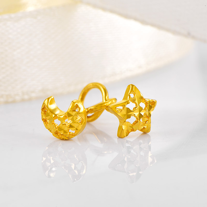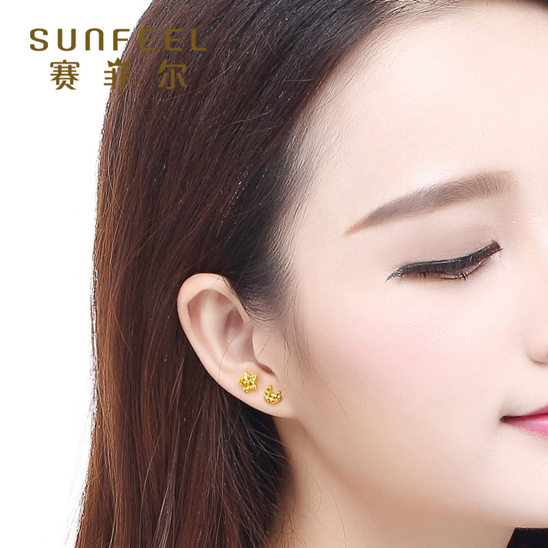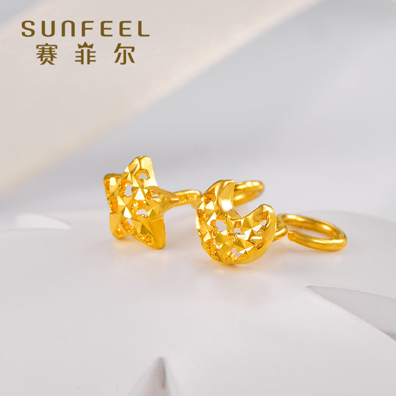 赛菲尔星月足金999.9耳钉耳圈黄金女镂空时尚耳饰送女友礼物黄金