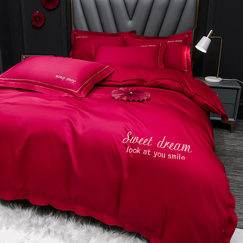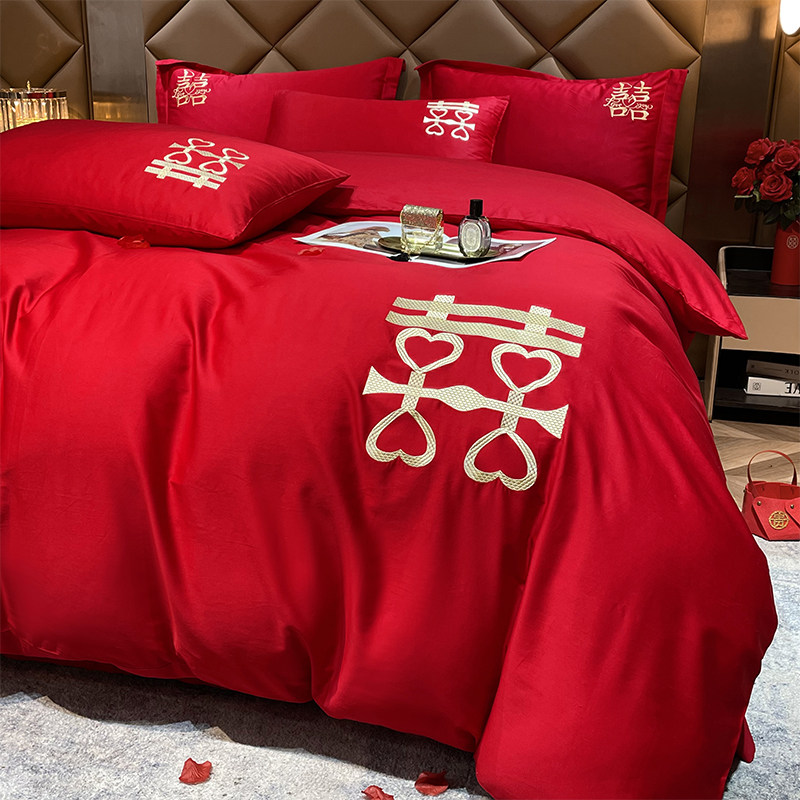 婚庆四件套d婚嫁新婚床品刺绣喜被大红色结婚床单笠礼房床中式简