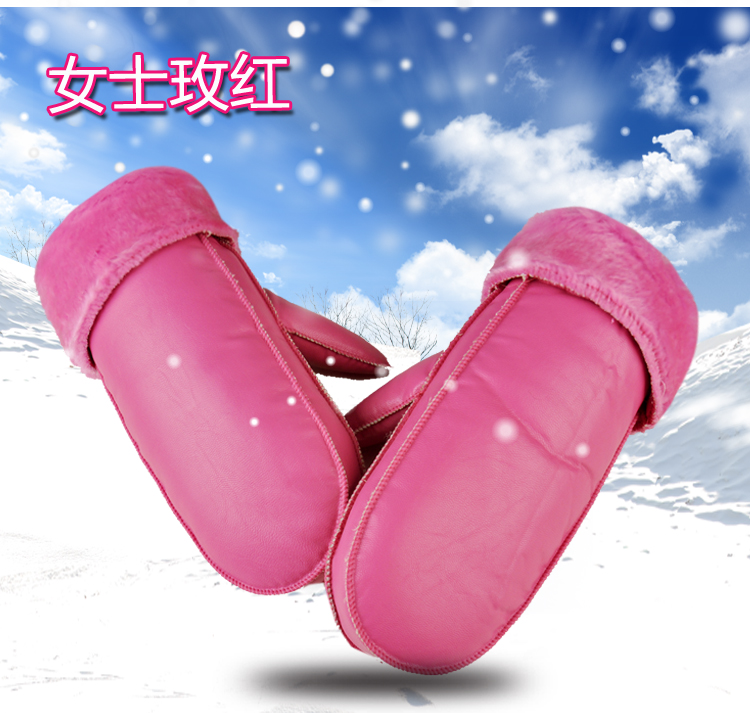 男士女士加厚皮棉闷子手套连指毛绒里冬季防寒防雨雪保暖情侣骑车