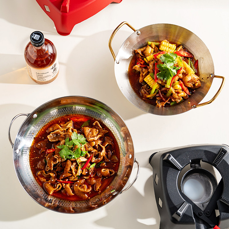 onlycook不锈钢双耳干锅锅具家用固体酒精炉子小火锅饭店用煲仔锅