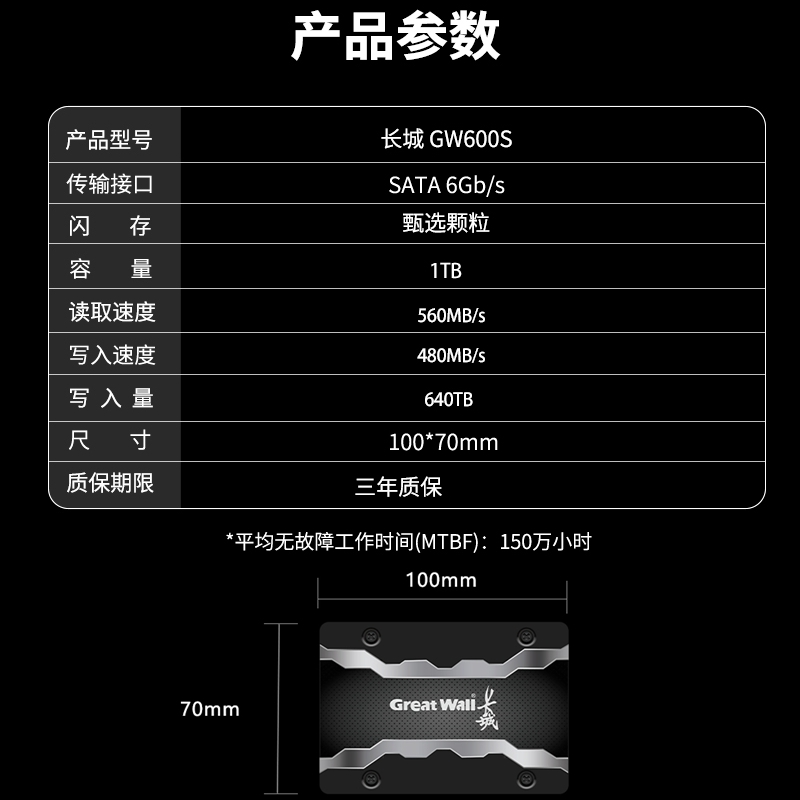 Great Wall/长城GW600S全新1TB固态硬盘2.5寸SSD硬盘1G缓存