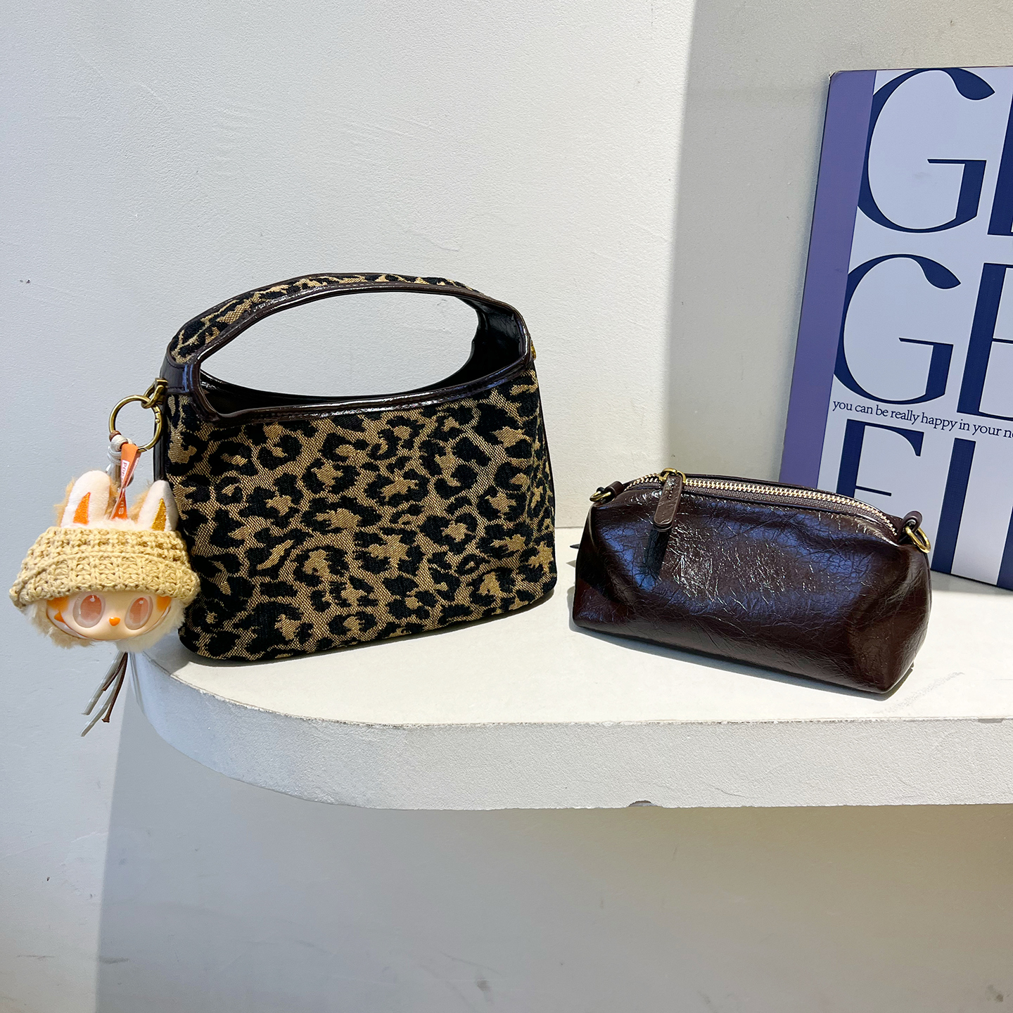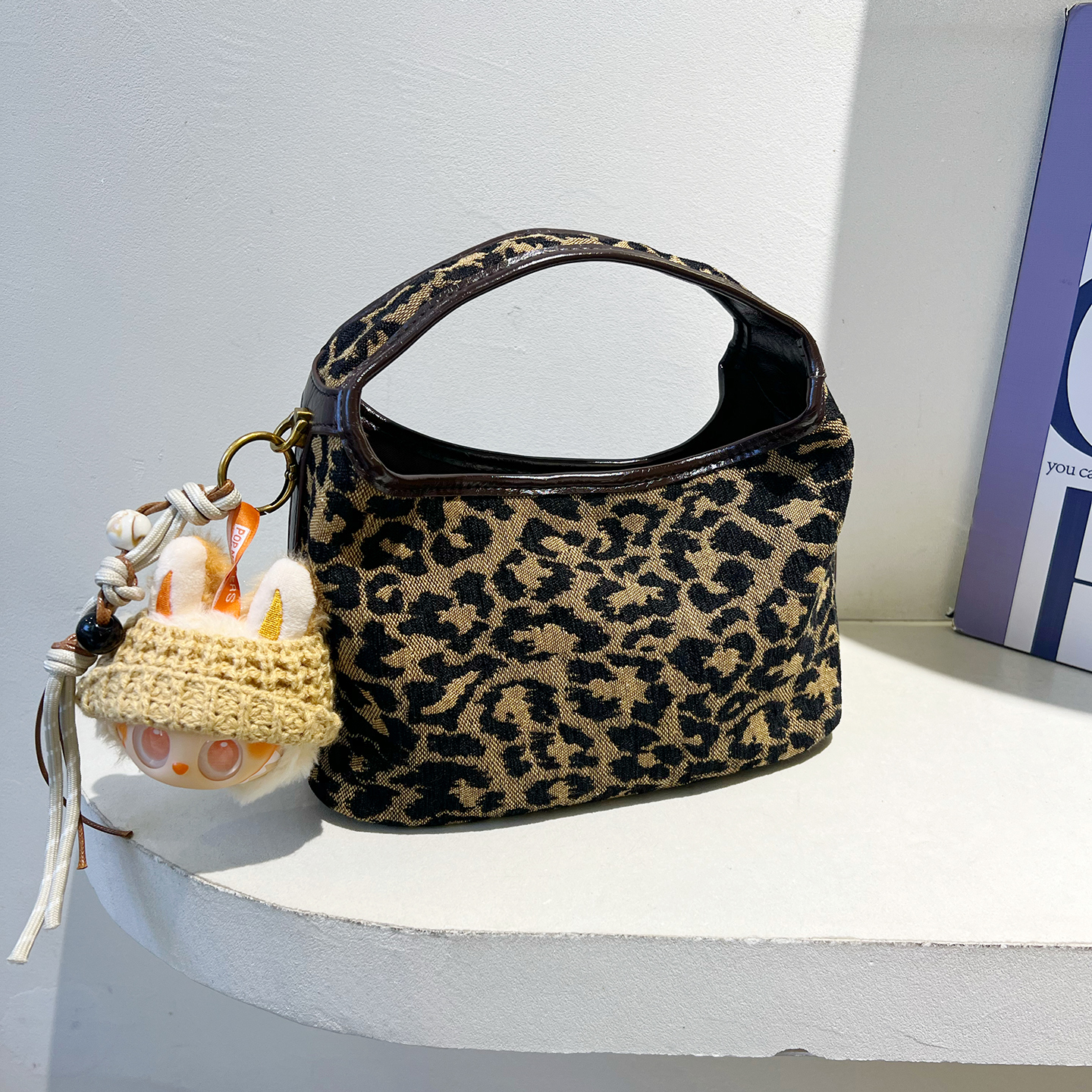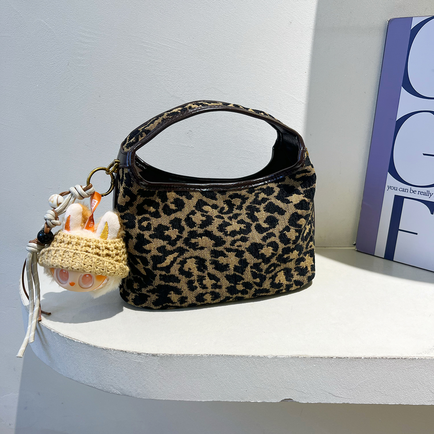 小众时髦豹纹帆布手提包精致挂饰单肩包女包2025新款子母包斜挎包