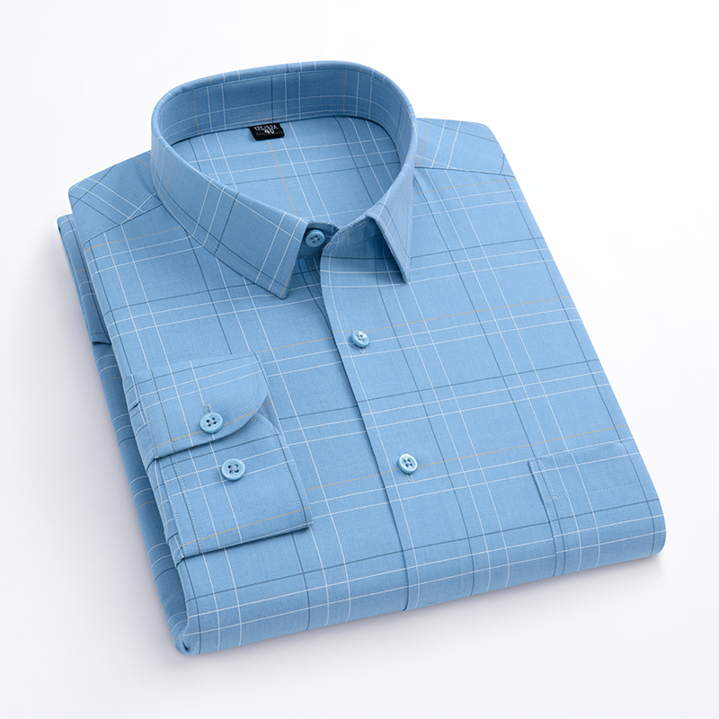 正装春夏长袖棉衬衫格子免烫中老年条纹男士商务免烫大码打底衬衣