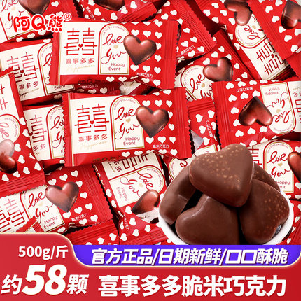 喜事多多心形脆米巧克力结婚喜糖批发专用订婚糖果婚礼小零食散装