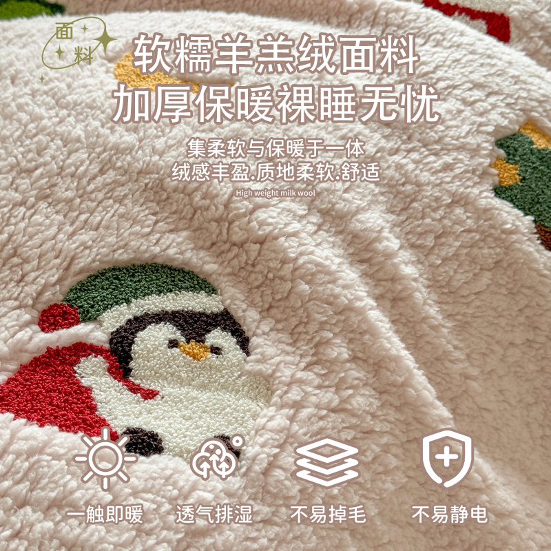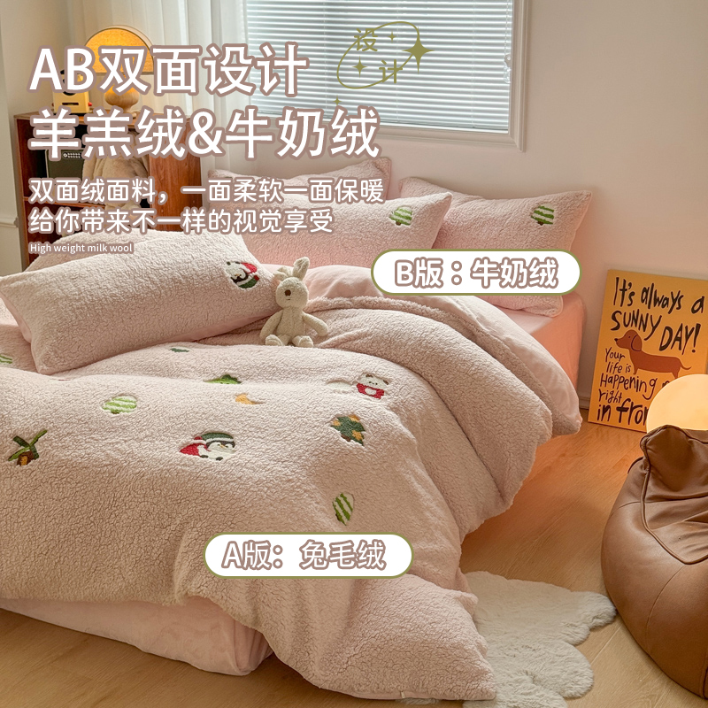 ABS加厚羊羔绒床上四件套牛奶绒被套学生宿舍三件套冬季加厚被罩