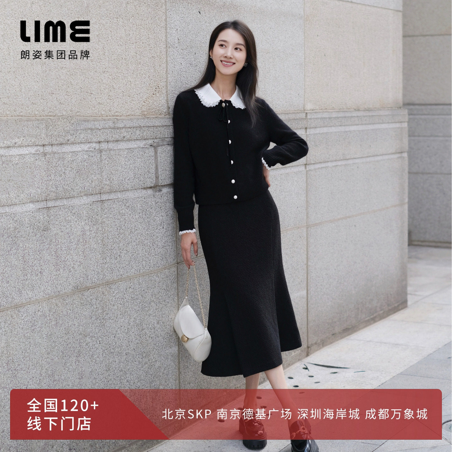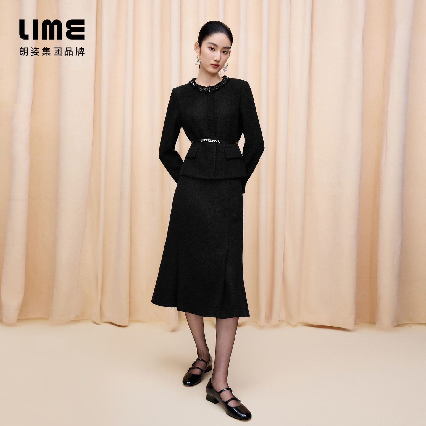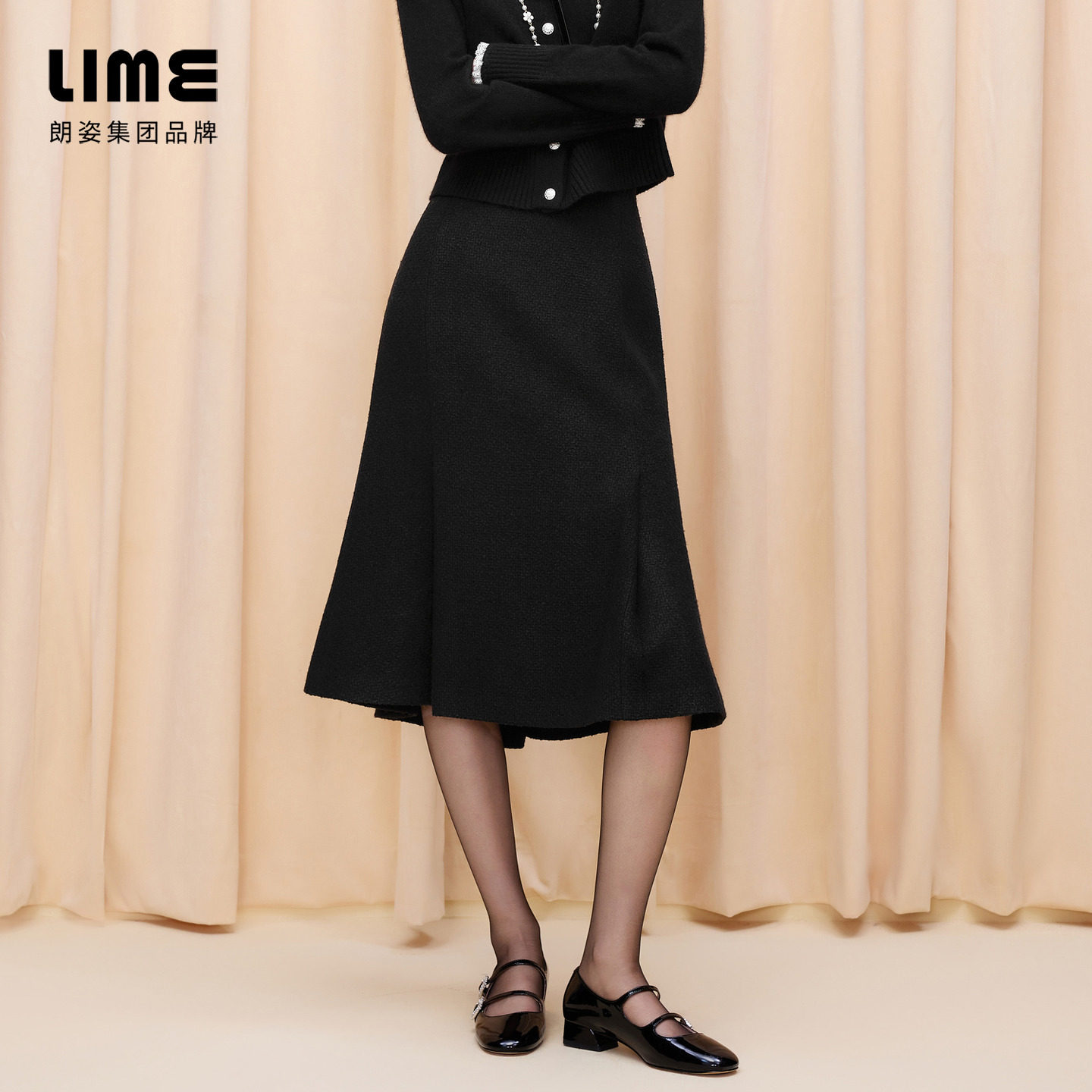 朗姿集团LIME莱茵莱茵修身鱼尾裙摆香风花式纱半裙25秋冬新款