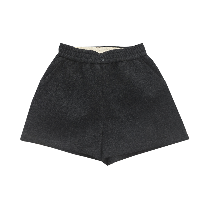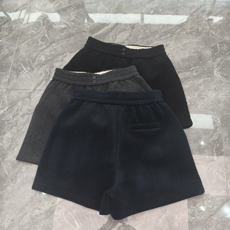 两粒扣毛呢短裤女秋冬2025新款松紧腰A字宽松阔腿显瘦打底靴裤子