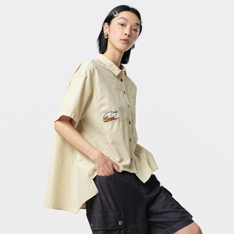MOVEUP幻走2024夏季新款.FUN系列翻领小狗绣花设计师中长款衬衫女