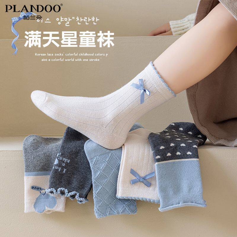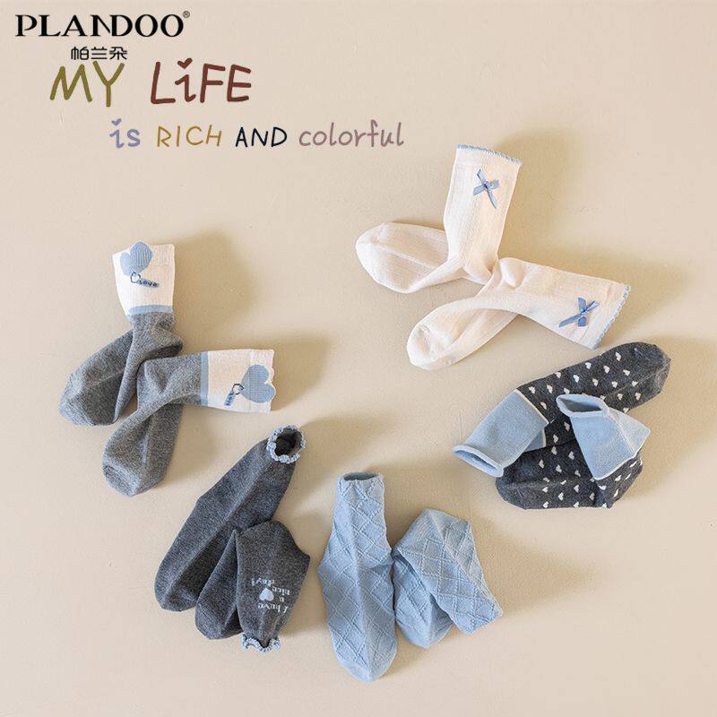 帕兰朵儿童新款春秋可爱宝宝女孩公主袜韩系简约秋冬棉袜中长童袜