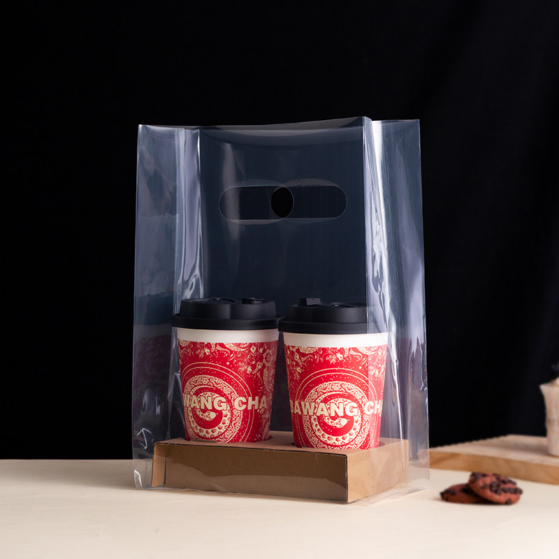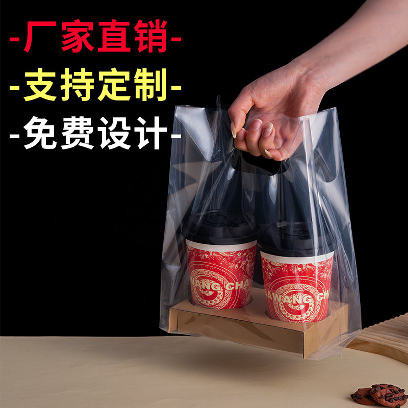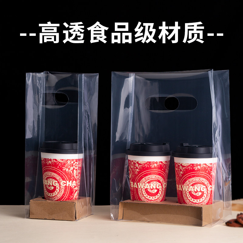 透明磨砂奶茶打包袋饮料袋商用杯袋单杯双杯袋加厚咖啡果汁手提袋