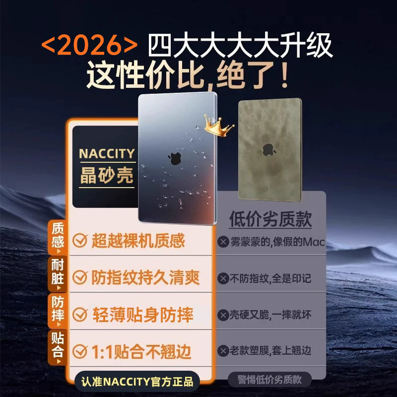 NACCITY适用苹果macbook保护壳2026新款air15.3寸pro笔记本mac电脑套14磨砂m5透明16软macpro防摔13配件m4