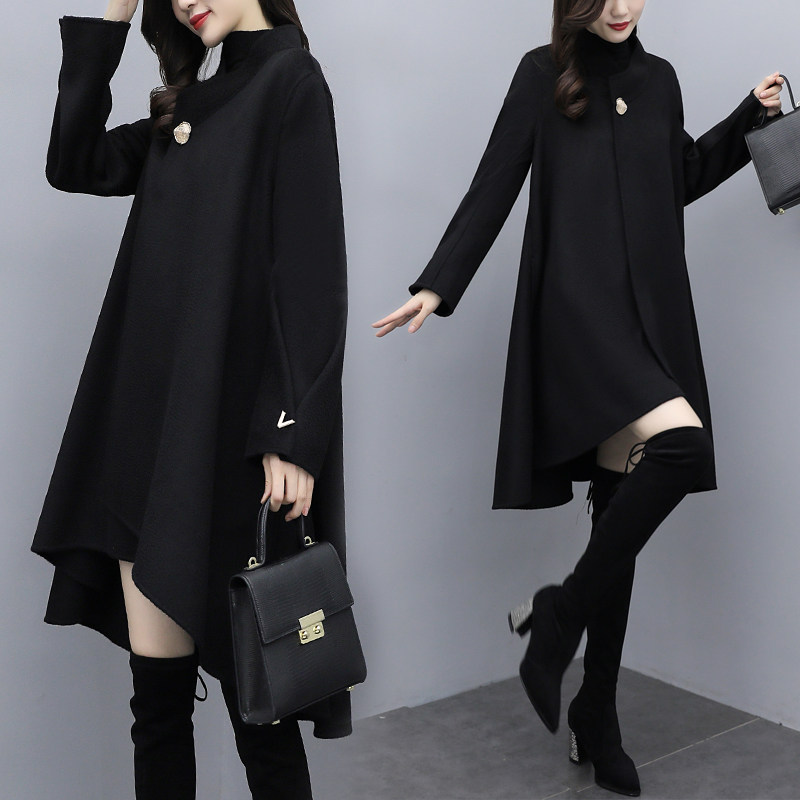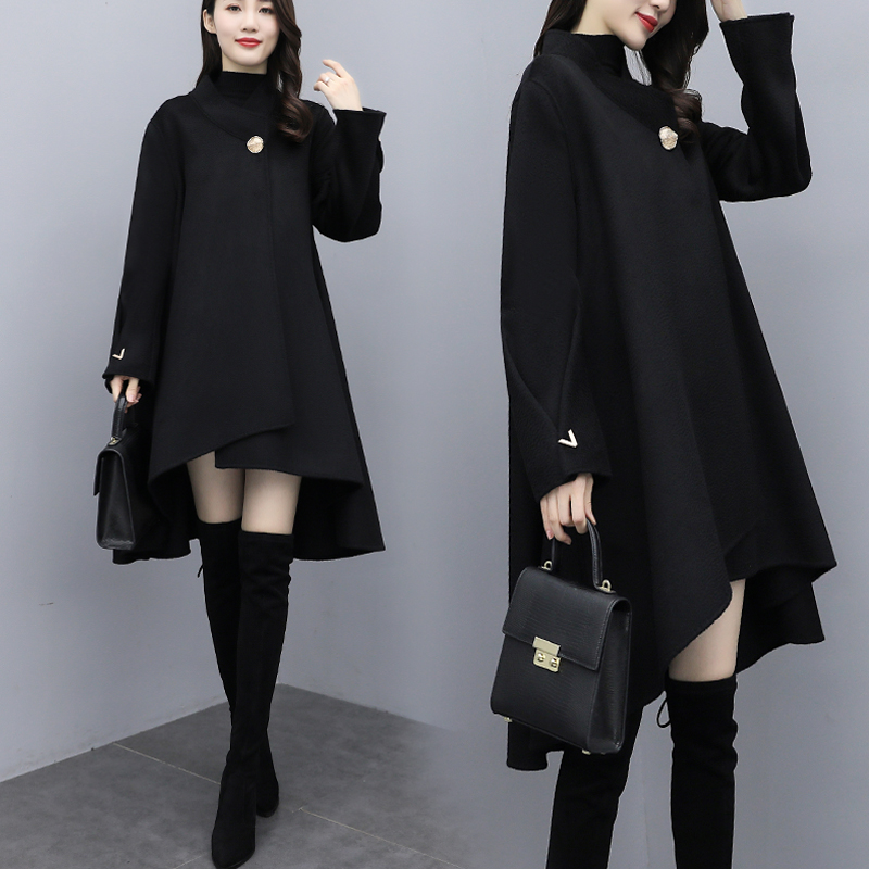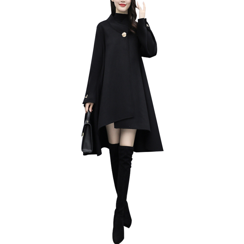 2025新款秋冬韩版时尚大码宽松中长款黑色毛呢斗篷外套呢子大衣女