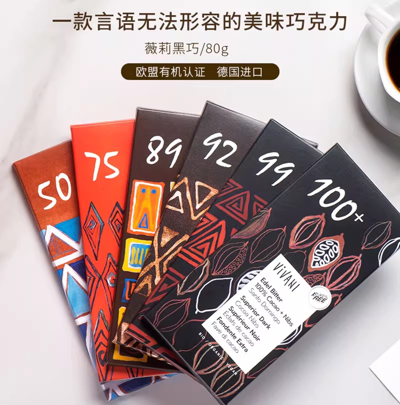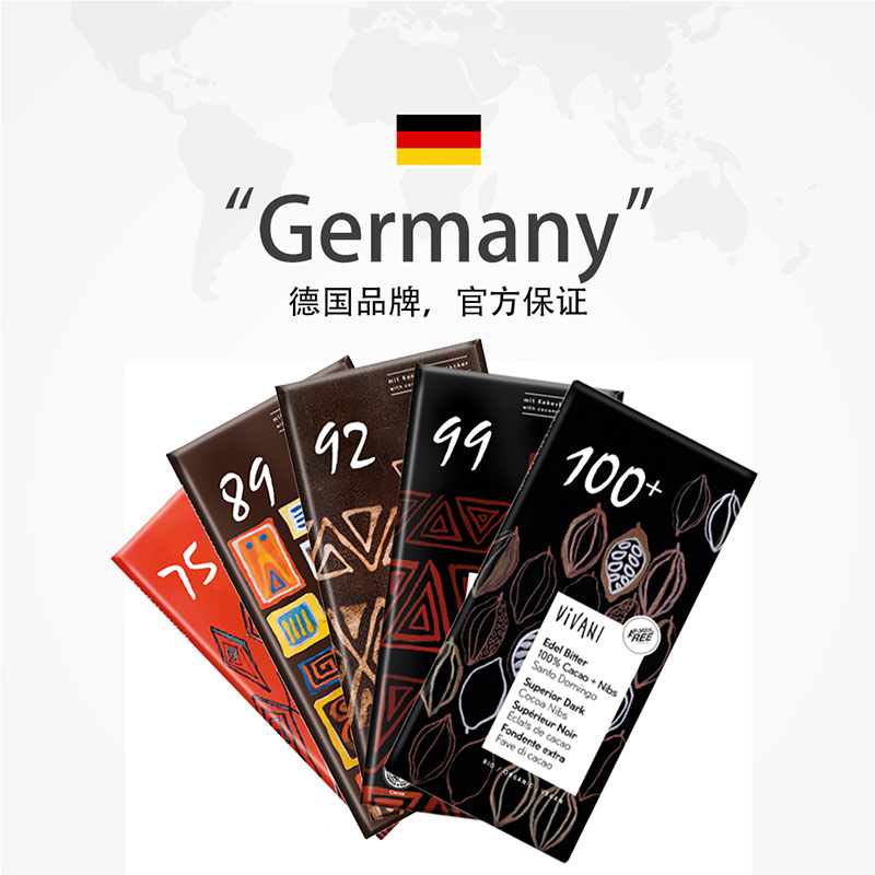 【自营】vivani德国进口黑巧克力薇莉纯可可脂100%黑巧排块原装